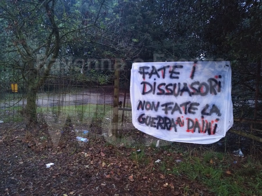 “Un lenzuolo con lo slogan “Fate i dissuasori, non fate la guerra AI DAINI” ci è stato segnalato dalla serata di venerdì 25 presso via dei Lombardi, in prossimità della pineta dove vivono gli ungulati oggetto della famigerata delibera regionale 140/2021; questa, lo ricordiamo, in nome di non specificati danni all’agricoltura e di incidenti stradali, condanna i malcapitati animali a deportazioni in zone di caccia e presso allevamenti perlopiù da carne. Questo nonostante i risarcimenti per danni causati dai daini alle coltivazioni risultino, ad attento esame, prossimi allo zero sia a Ravenna che a Ferrara, e gli incidenti, come sottolineato dalla consigliera Giulia Gibertoni (Gruppo Misto) in una recente interrogazione,  si attestino su una percentuale risibile sul totale degli incidenti, come già documentato da Anas in risposta a precedente interrogazione (“richieste risarcitorie pervenute dagli utenti stradali – nell’ultimo decennio – sono meno di dieci”).