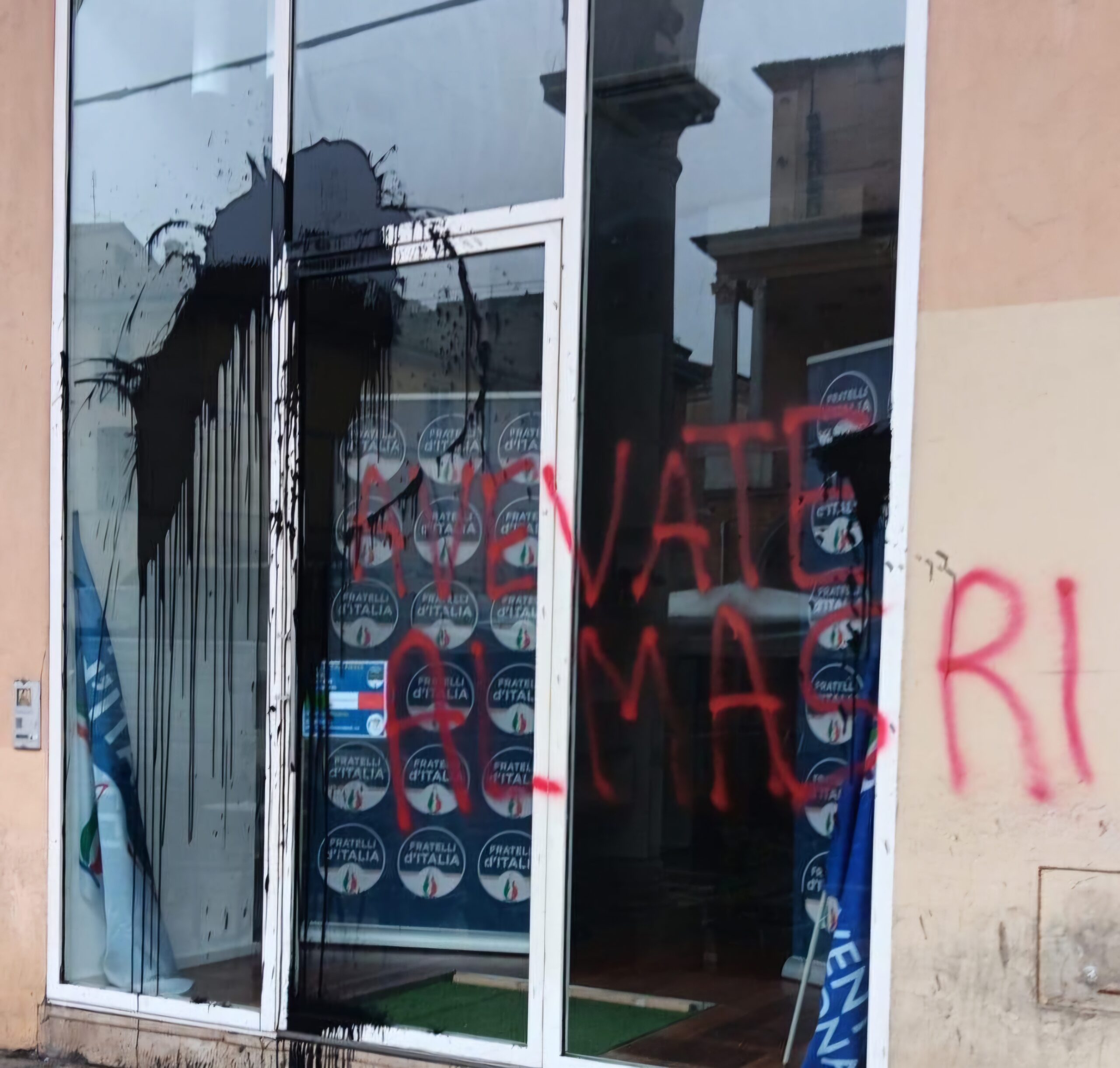 “Avevate Almasri”, una scritta spray rossa e della vernice nera. Così, nella notte appena trascorsa, è stata vandalizzata la sede faentina di Fratelli d’italia, in Piazza del Popolo, sotto i portici, di fronte alla residenza municipale.