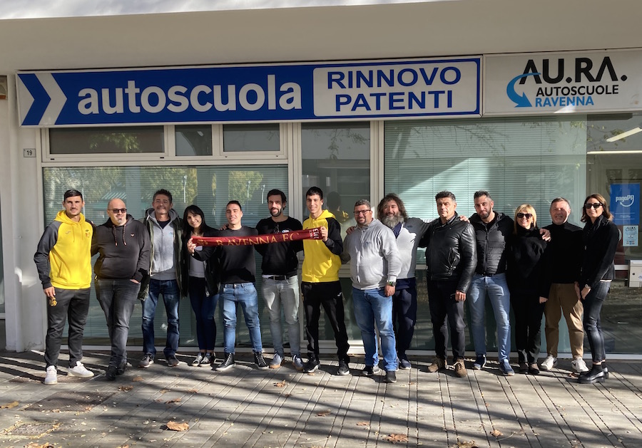 Nei giorni scorsi, una delegazione del Ravenna FC – composta fra gli altri dai giocatori Luca Rivi e Luca Magagnini – ha fatto visita alla sede di Au.Ra. Autoscuole Ravenna di piazza Paul Harris, per incontrare il presidente Yuri Gentilini e una serie di soci e istruttori della società (che raggruppa tredici autoscuole fra Ravenna, Cervia e Cesena).