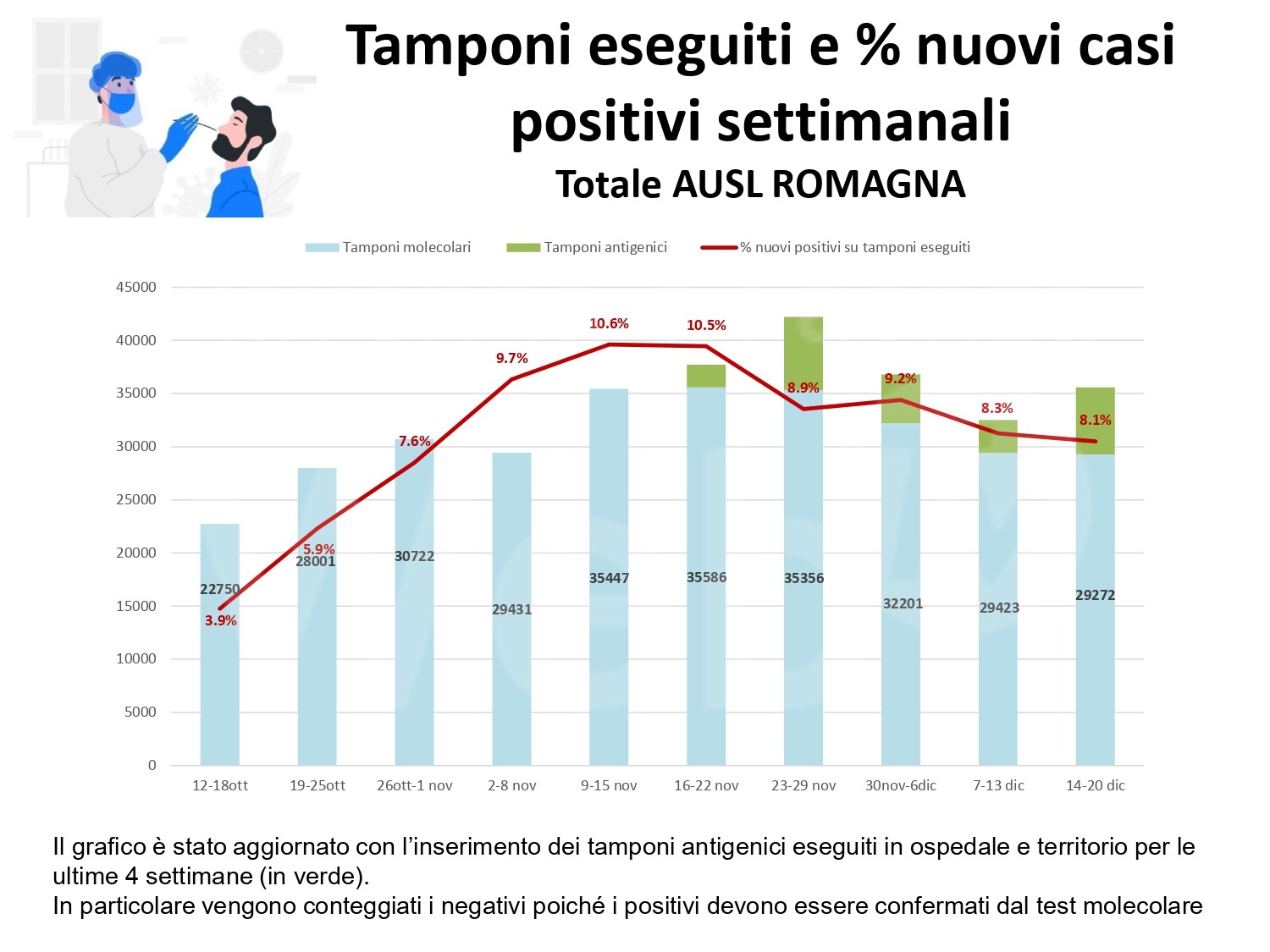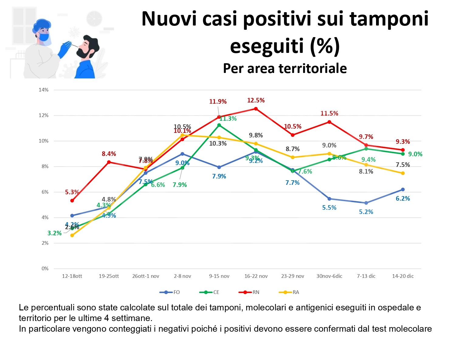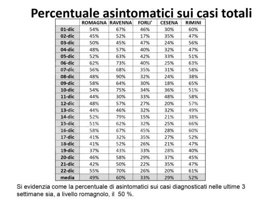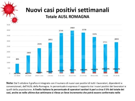 Al fine di fornire un aggiornamento rispetto all’evoluzione del quadro epidemiologico dell’infezione da covid 19 nel territorio romagnolo, su un arco temporale più significativo rispetto alla situazione di una singola giornata, si riportano, in allegato, alcuni dati relativi alla settimana dal 14 al 20 dicembre (precisando che si tratta dei casi di residenti diagnosticati sul territorio romagnolo).