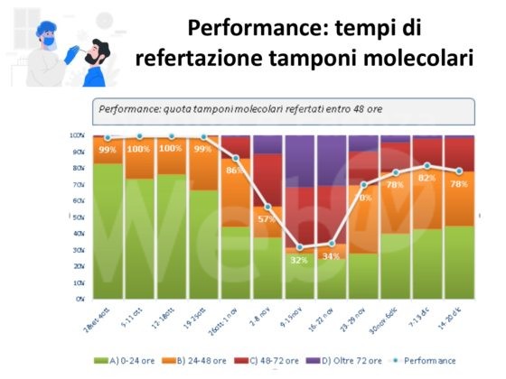 Nella settimana di riferimento si sono verificate infatti 2.893 positività su un totale di 35.582 tamponi, con una incidenza dunque del 8,1 per cento, sostanzialmente in linea col dato della settimana precedente; incidenza che resta al di sotto della media nazionale. Su questo specifico indicatore si registra, nell’ultima settimana, un lieve calo su tutti i territori salvo Forlì , mentre si registra un lieve aumento, quanto all’indicatore delle positività su popolazione residente in tutti i territori tranne Ravenna che invece continua col trend di calo. La percentuale di asintomatici media romagnola è sul 49 per cento, con Rimini e Ravenna superiori al 50 per cento . La performance dei tempi di refertazione dei tamponi entro le 48 ore si attesta sul 78 per cento. Per quanto riguarda l’indicatore relativo alle persone ricoverate, a fine della scorsa settimana la quota di 574 ricoveri (più 30 rispetto alla settimana precedente) mantiene l’azienda oltre il livello rosso del Piano ospedaliero Covid; stazionarie in valore assoluto le terapie intensive mentre è in calo la loro percentuale rispetto al totale dei ricoveri, la percentuale dei ricoverati in terapia intensiva resta inferiore a quella media regionale.