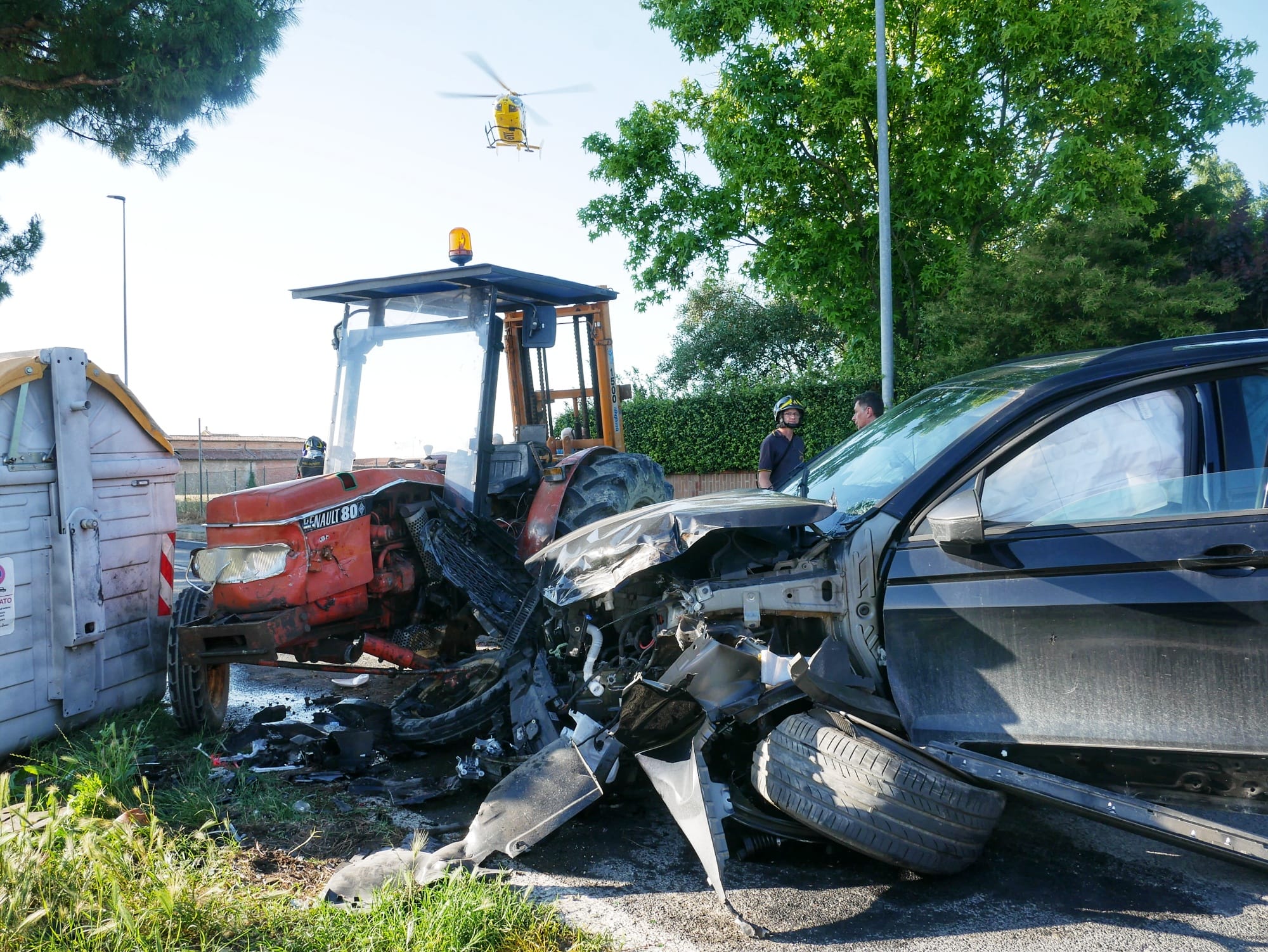 Grave incidente a Barbiano, nel comune di Cotignola, nel pomeriggio di lunedì. In via Caduti del Lavoro si è verificato uno scontro fra una Seat e un trattore per cause al vaglio della Polizia Locale della Bassa Romagna. Dopo la chiamata alla Centrale Operativa, sul posto sono intervenuti i soccorritori del 118 e i Vigili del Fuoco. Le conseguenze più gravi sono state a carico dell’uomo alla guida del trattore, sbalzato dall’abitacolo dopo l’urto. L’uomo, classe 1961, è stato caricato a bordo dell’elimedica e trasportato con il codice di massima gravità all’ospedale Bufalini di Cesena. Meno grave il conducente dell’auto, un uomo del 1980, trasportato però anch’egli in ospedale.