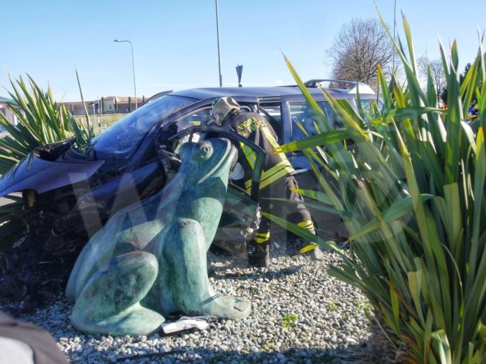 Grave incidente nella mattinata di martedì, intorno alle 11.45, a Conselice dove un’auto non si è fermata alla rotatoria all’incrocio fra via Puntiroli e via Senio, finendo nel mezzo dell’aiuola dove sorge una grande statua in bronzo, il monumento al ranocchio, un’opera di Gian Piero Baldazzi. Il veicolo si stava dirigendo verso il centro di Conselice. Al volante una donna, classe ’71, residente in zona, che ha riportato nell’impatto serie conseguenze. Per soccorrere l’automobilista è arrivata l’ambulanza del 118 e l’elicottero decollato da Ravenna. È stato necessario intubare la conducente, poi trasportata a bordo dell’elicottero, decollato alla volta del centro traumatologico dell’ospedale Bufalini di Cesena con il codice di massima gravità.