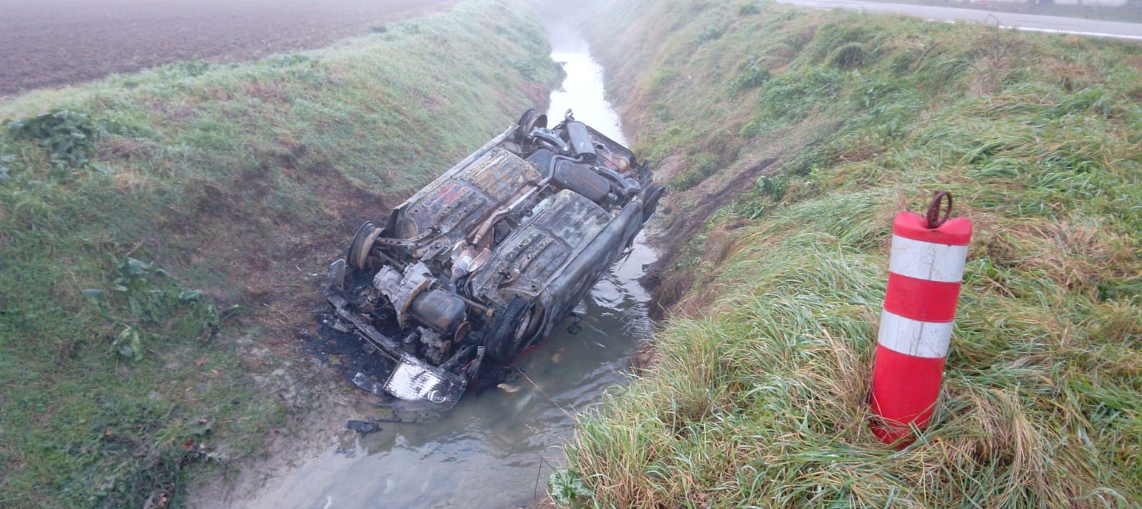 Auto esce fuori strada e prende fuoco. È successo nella mattinata di lunedì, a San Zaccaria, in vicolo Sordino, con una nebbia molto fitta. A bordo di una Fiat 500 stavano viaggiando due ragazzi. Per cause al vaglio dei Carabinieri di Campiano, la vettura è uscita di strada, precipitando dentro il canale a lato della carreggiata, cappottando. Si sono innescate delle fiamme e l’auto ha preso fuoco. I due occupanti sono riusciti ad uscire in tempo dall’abitacolo. Solo uno di loro ha riportato ustioni ad un braccio. I due sono quindi stati raggiunti dai soccorsi. Il personale del 118 ha predisposto il trasferimento all’ospedale Bufalini di Cesena per il ragazzo col braccio ustionato. Ai Vigili del Fuoco il compito di spegnere l’incendio che nel frattempo ha distrutto la 500.