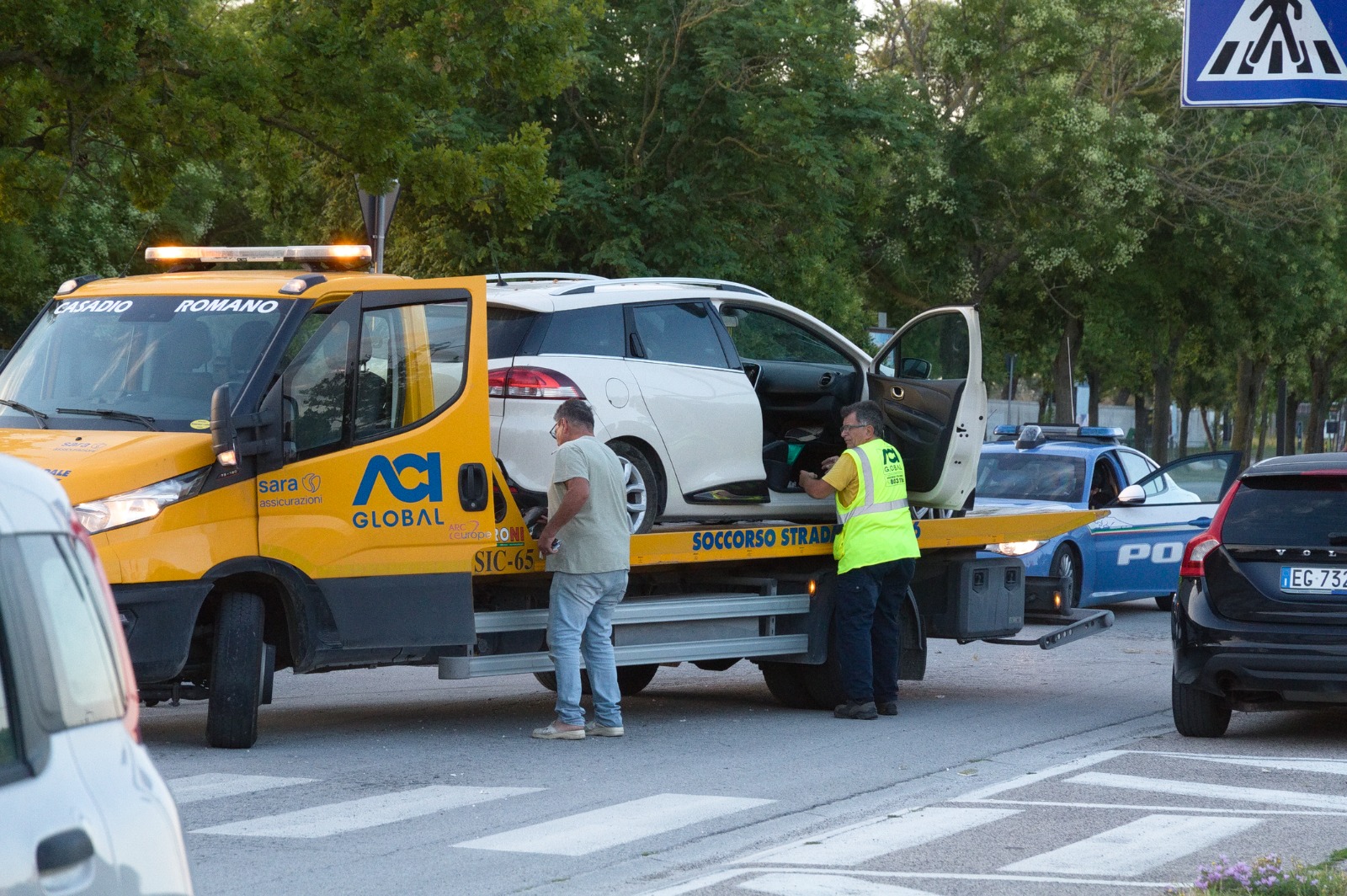 Una Renault Clio, parcheggiata nei pressi di uno stabilimento balneare di Marina di Ravenna, è stata rubata nel corso della notte. Il proprietario se n’è accorto intorno alle 5 di sabato mattina e ha immediatamente allertato le forze dell’ordine. La descrizione della vettura è stata così diffusa a tutti gli operatori in servizio. Poco dopo, sempre alla centrale operativa, è arrivata un’altra segnalazione da parte di alcuni residenti nella zona del Pala de André: un’auto era ferma nel piazzale del palazzetto, fortemente danneggiata dopo aver abbattuto la segnaletica stradale e alcuni fittoni. I blocchi di cemento, dopo l’evidente violento urto, sono andati ad impattare altre tre auto parcheggiate nella zona, danneggiandole. L’auto si è rivelata essere la Renault Clio rubata a Marina di Ravenna. Gli autori del furto e dell’incidente stradale ormai scomparsi.