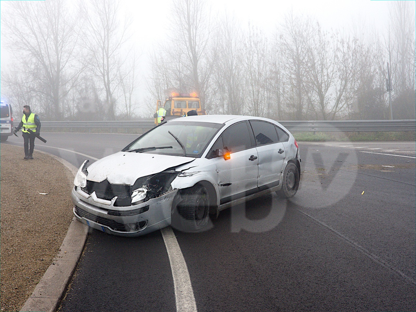 Incidente ad Alfonsine questa mattina intorno alle 7.30, quando in strada era presente una nebbia molto fitta. Una Citroen condotta da un trentenne, mentre percorreva via Rossetta, ha sbandato  sulla sinistra poco prima della rotatoria sulla Reale ed è andata a sbattere contro il guard rail. L’auto poi, fuori controllo, ha travolto alcuni segnali stradali e ha terminato la sua corsa nelle corsie interne della rotatoria, senza fortunatamente coinvolgere altri mezzi. Il conducente della vettura non ha riportato gravi ferite ed è stato trasportato all’ospedale di Ravenna dall’ambulanza del 118, intervenuta in via Rossetta insieme all’auto con il medico
