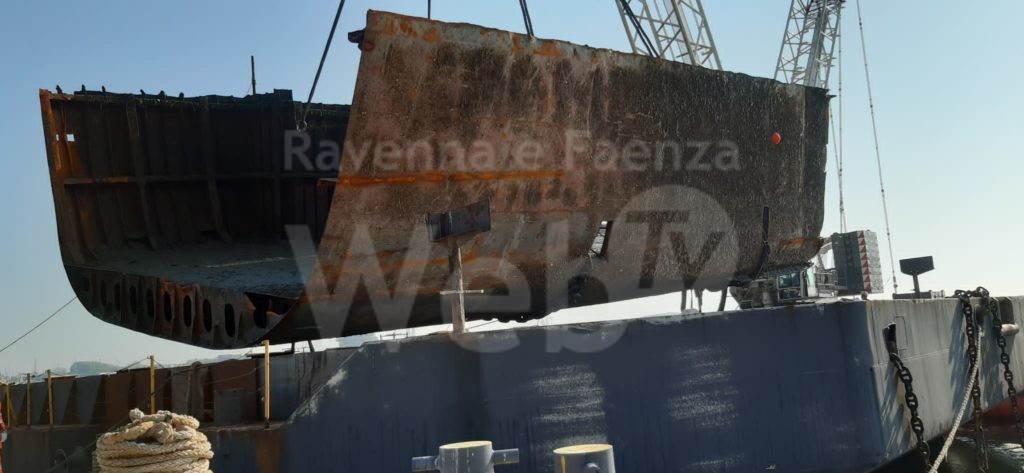 Si sono concluse questa mattina le operazioni di recupero del primo troncone del relitto della Berkan B, nell’ambito dell’intervento per la realizzazione del Ravenna Port Hub in corso nello scalo romagnolo. Nei giorni scorsi erano stati effettuati i test e le prove di sollevamento. All’alba di questa mattina il relitto è stato sollevato da una gru della Società Fagioli – che sta effettuando le operazioni per conto del Consorzio Stabile Grandi Lavori, General Contractor del Progetto Ravenna Port Hub, cui l’Autorità di Sistema Portuale ha affidato la rimozione e lo smaltimento del relitto – e si è poi provveduto a stabilizzare i carichi fino al posizionamento finale sulla chiatta, avvenuto intorno alle 10.