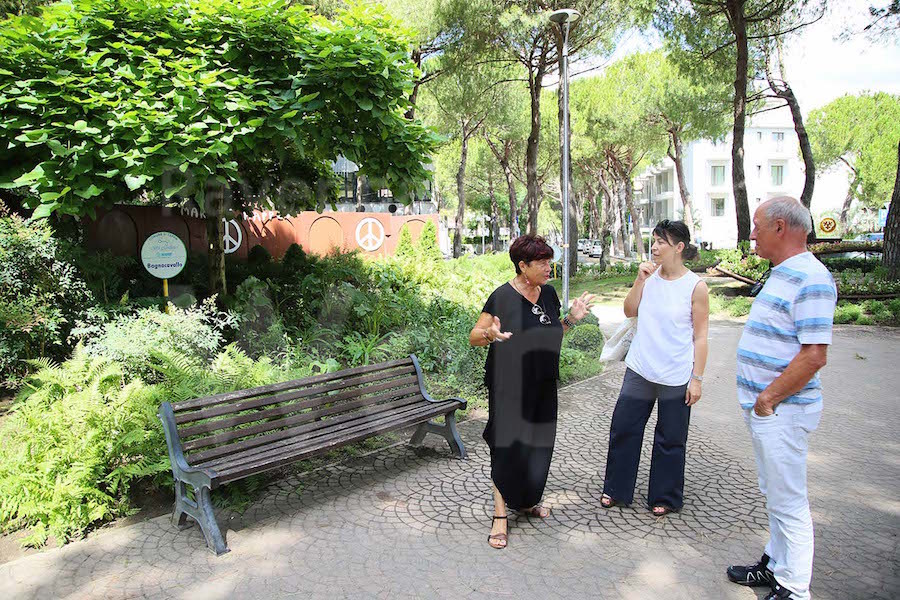La sindaca è stata accolta da Patrizia Petrucci, delegata al verde del Comune di Cervia e da Renato Baldassarri, creatore dell’aiuola Bagnacavallo insieme a Marion Berauer.