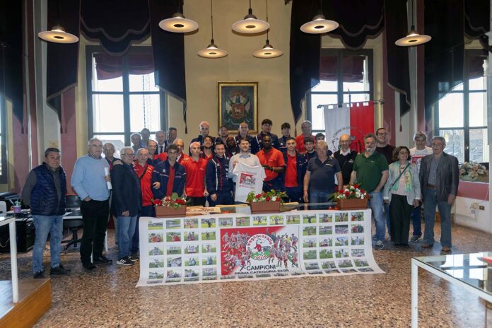 Il sindaco e i rappresentanti della giunta comunale hanno ricevuto in Municipio, mercoledì 30 aprile, la squadra di calcio dell’AC Bagnacavallo, protagonista di una stagione straordinaria culminata con la promozione in categoria Promozione, conquistata matematicamente domenica scorsa grazie alla vittoria per 2-1 sul Santa Sofia.