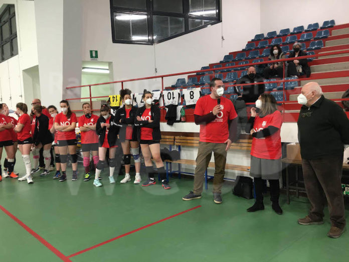 Alle 18.30 ci si è spostati al Palazzetto dello Sport per la partita di pallavolo “No alla violenza sulle donne” che ha visto fronteggiarsi Fulgur Bagnacavallo e Volley Ostellato per il campionato di serie D femminile.