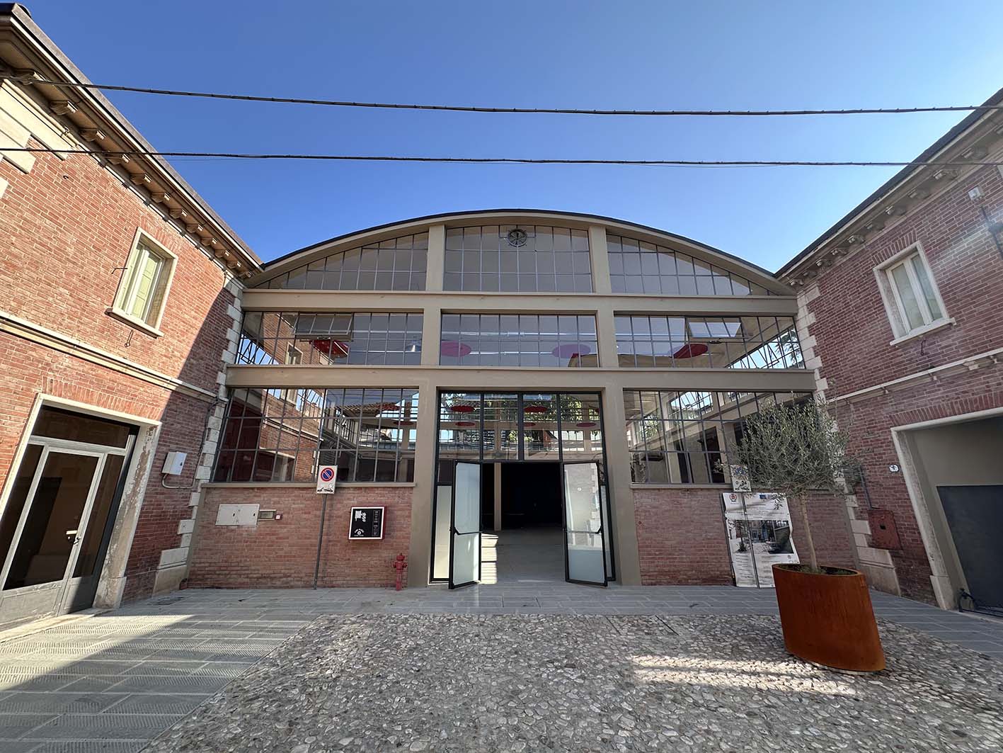 L’intervento, per un importo di circa 400.000 euro, è stato realizzato dalla ditta Safer di Lugo e ha interessato sia gli spazi interni – con nuovi impianti di illuminazione, pannelli fonoassorbenti e tinteggiature – sia il recupero delle due torrette laterali, compreso il locale a pianterreno un tempo adibito a pescheria. Contestualmente sono stati riqualificati anche gli esterni, con la nuova pavimentazione della piazzetta di accesso su via Baracca e il collegamento con il cortile di Palazzo Vecchio.