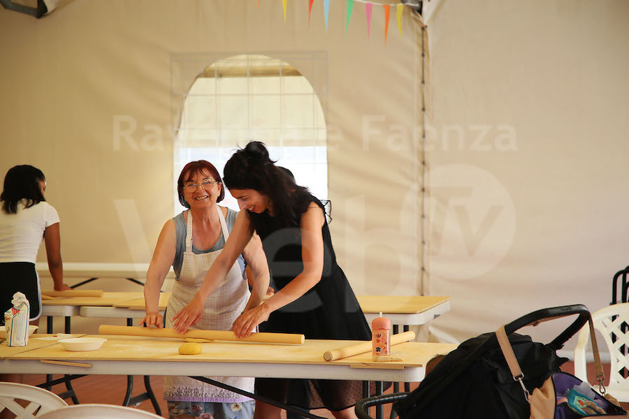 Il primo laboratorio, di circa tre ore, era dedicato alla pasta fresca ed è stato tenuto dalle cuoche del centro sociale Amici dell’Abbondanza.