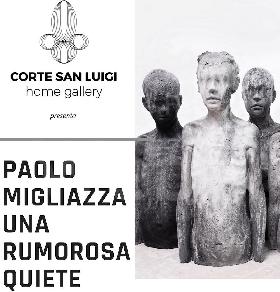 Nella sua ricerca intorno alla figura umana e alla relazione fra il soggetto e i materiali, Paolo Migliazza predilige figure di bambini o adolescenti, per creare opere in cemento e pigmenti che si rivelano all’osservatore in tutta la loro silenziosa staticità. “Una rumorosa quiete” è il titolo della mostra che espone una selezione di 7 sculture (dim. 65x25x23) suddivise tra l’ingresso principale e lo scalone nobile di Villa Rinaldi-Platti. Se fino all’inizio del 900 i bambini erano protagonisti della festa a loro dedicata presso il cortile della Villa nel giorno della festività di San Luigi Gonzaga, oggi i giovanissimi corpi asciutti e silenziosi creati da Paolo Migliazza ci traghettano in un una nuova dimensione a cavallo tra passato, presente e futuro.