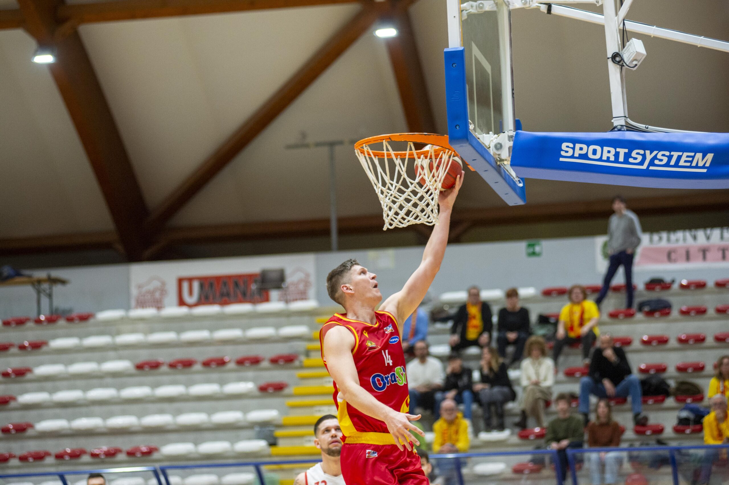 Nel secondo quarto Chiusi prova ad allungare ulteriormente con Bertocco, Minoli e Natali, trovando soluzioni sia in transizione sia dall’arco. L’OraSì tenta di restare agganciata con Jakstas e Naoni, ma una tripla allo scadere di Raffaelli manda le squadre all’intervallo lungo sul 51-38. Nonostante il tentativo di dare una svolta alla propria partita, i giallorossi continuano a non trovare continuità nel tiro da tre.