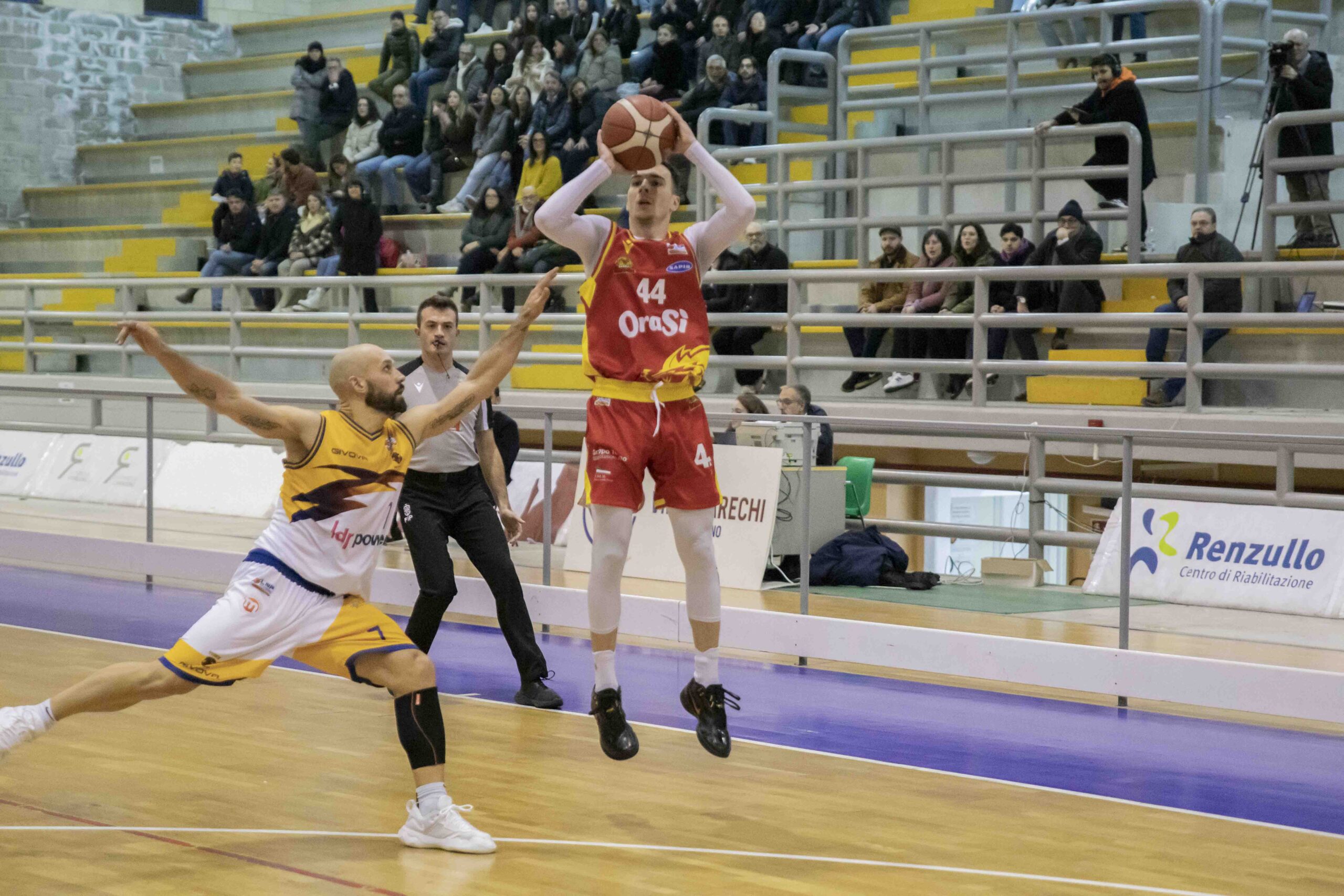 Dopo un primo tempo giocato alla pari, l’OraSì mette la testa avanti all’inizio della ripresa, conducendo la gara fino a due minuti dal termine quando due triple consecutive permettono ai padroni di casa di ottenere la vittoria.