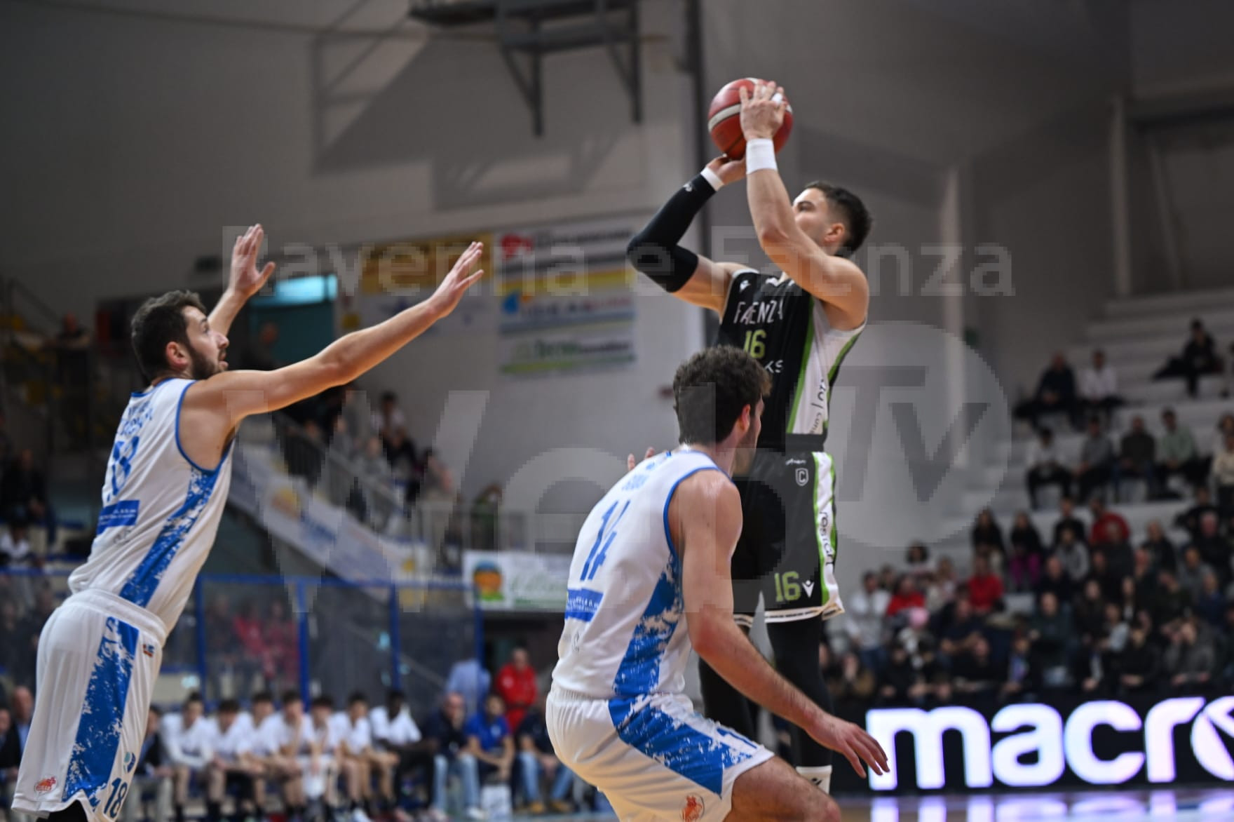 NOTE. Parziali: 26-13; 44-37; 59-59. Tiri da 2: Roseto: 24/38, Faenza: 18/33; Tiri da 3: Roseto: 5/21, Faenza: 10/31; Tiri liberi: Roseto: 23/26, Faenza: 13/20; Rimbalzi: Roseto: 33, Faenza: 34.
