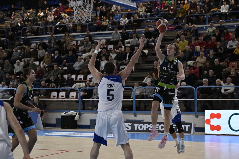Tutte le vittorie sono importanti, ma ce ne sono alcune che lo sono più delle altre. Quella conquistata a Ferrara dalla Tema Sinergie è una di quelle, perché è arrivata grazie al carattere, alla determinazione e alla lucidità. Qualità che sono state fondamentali per imporsi in casa di una squadra in salute, superata soltanto in un finale molto combattuto. Vettori con 33 punti è stato il grande trascinatore in attacco, ma tutti hanno dato un importante contributo, permettendo di reggere l’urto a rimbalzo contro una squadra molto fisica pur dovendo rinunciare a Mbacke e tirando da tre punti con un 14/28.