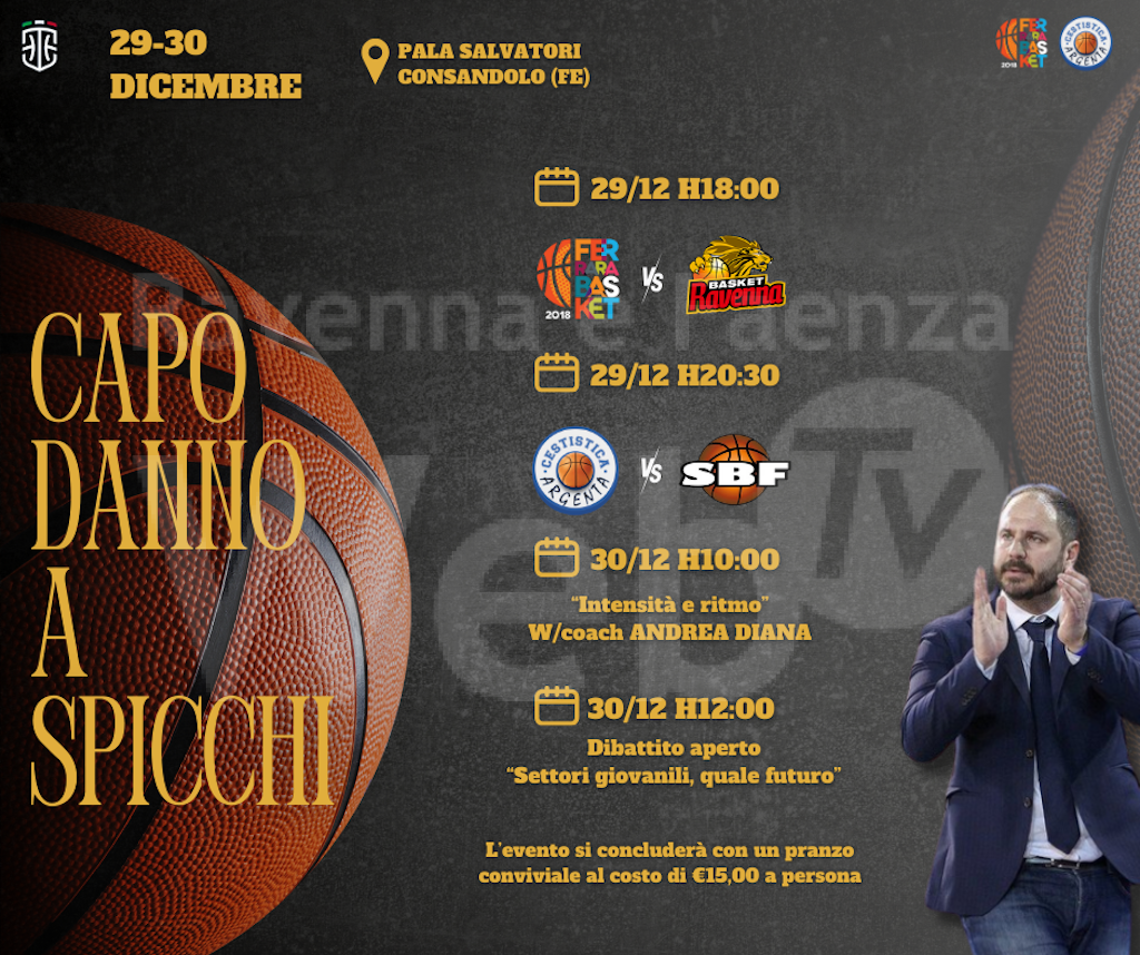 Venerdì 29 dicembre, in occasione dell’evento “Capodanno a spicchi”, la squadra di coach Bernardi farà alle ore 18.00, presso il PalaSalvadori di Consandolo, uno scrimmage aperto al pubblico con Ferrara 2018.