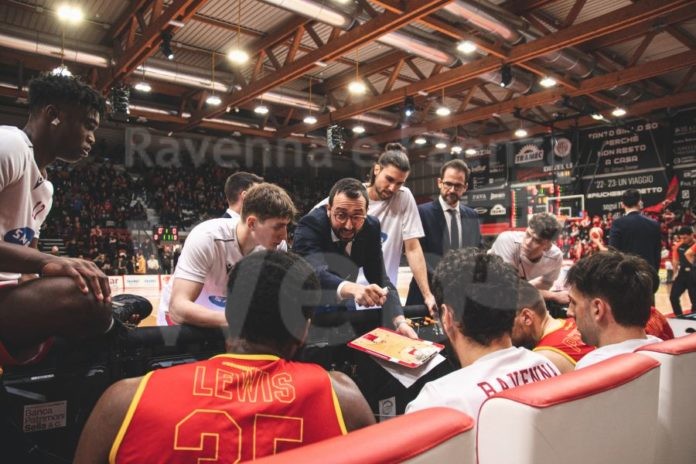 Ravenna paga 15/42 da 2 punti (36%) e perde la battaglia a rimbalzo 40 a 29. Doppia cifra per Danilo Petrovic (11), trascinatore nel parziale di inizio terzo quarto, e Federico Bonacini (10 con 5 rimbalzi e 4 palle rubate). Non basta all’OraSì il solito grande supporto dei numerosi tifosi giallorossi in trasferta.