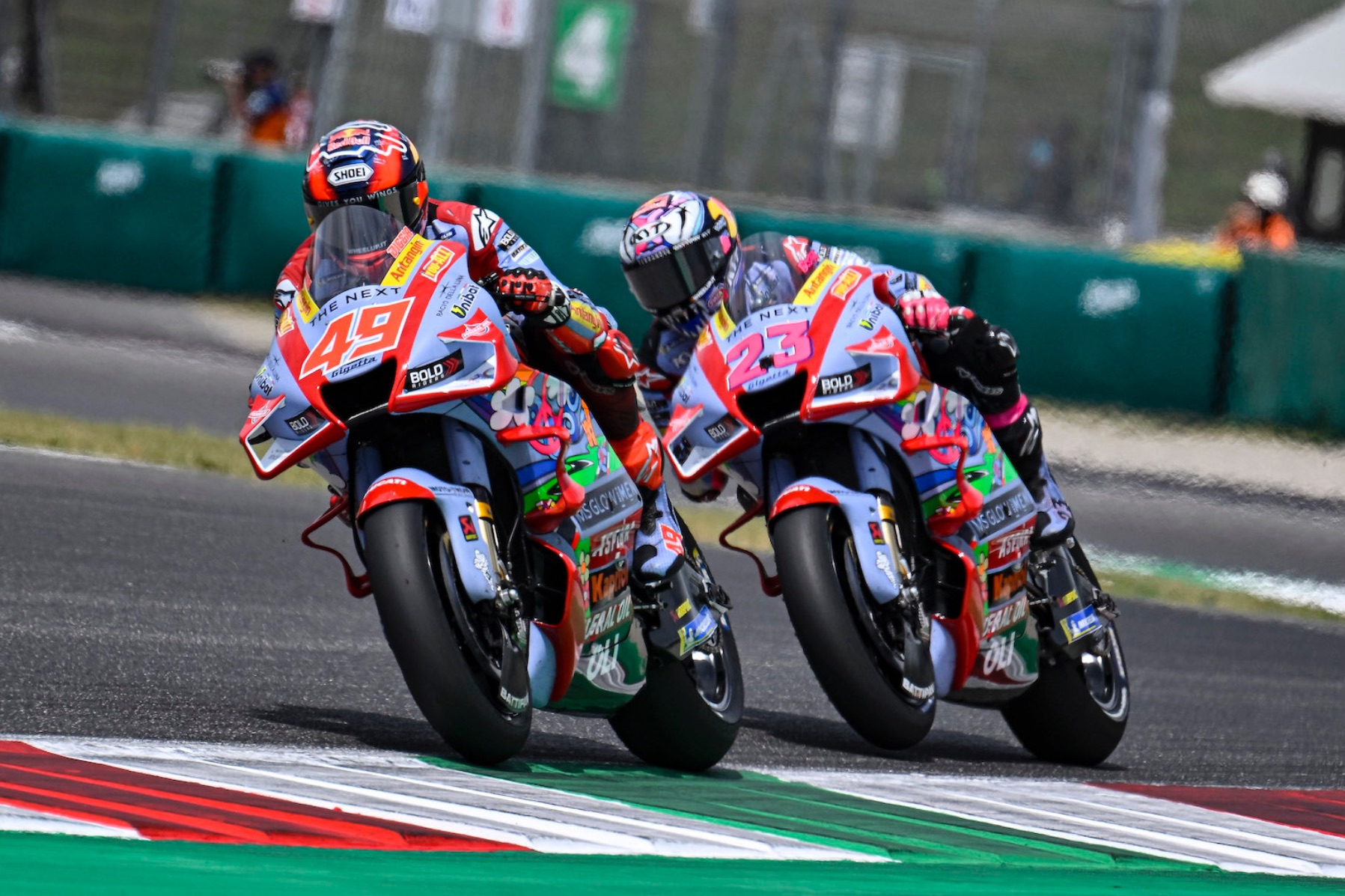 Tutt’altro sapore per Fabio Di Giannantonio che partiva dalla pole position di questo Gran Premio d’Italia. Il rookie del team Gresini Racing MotoGP regge la pressione e mantiene la testa della corsa nei primi giri. Chiude undicesimo quello che è fino al momento il suo miglior risultato nella classe regina, aggiungendo un altro tassello dopo i primi punti di Le Mans