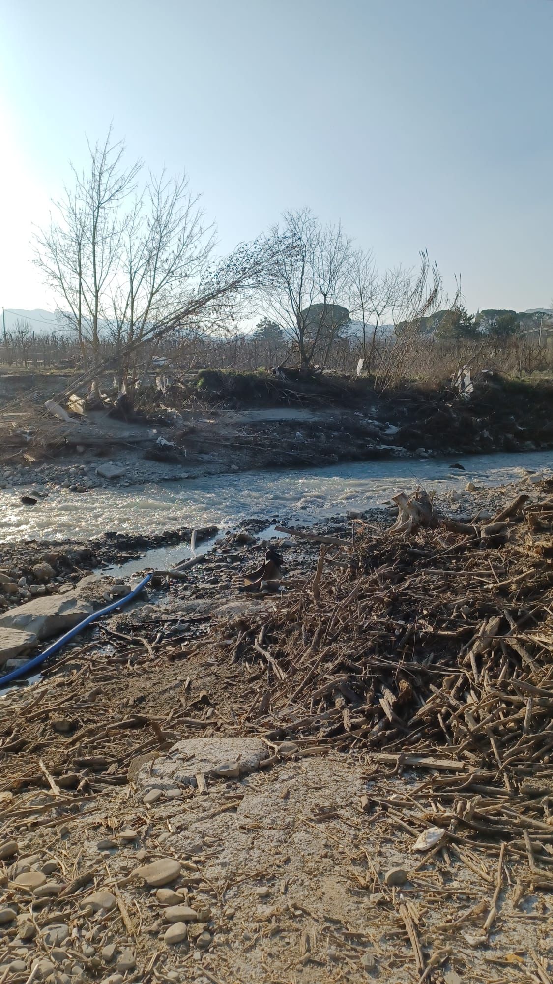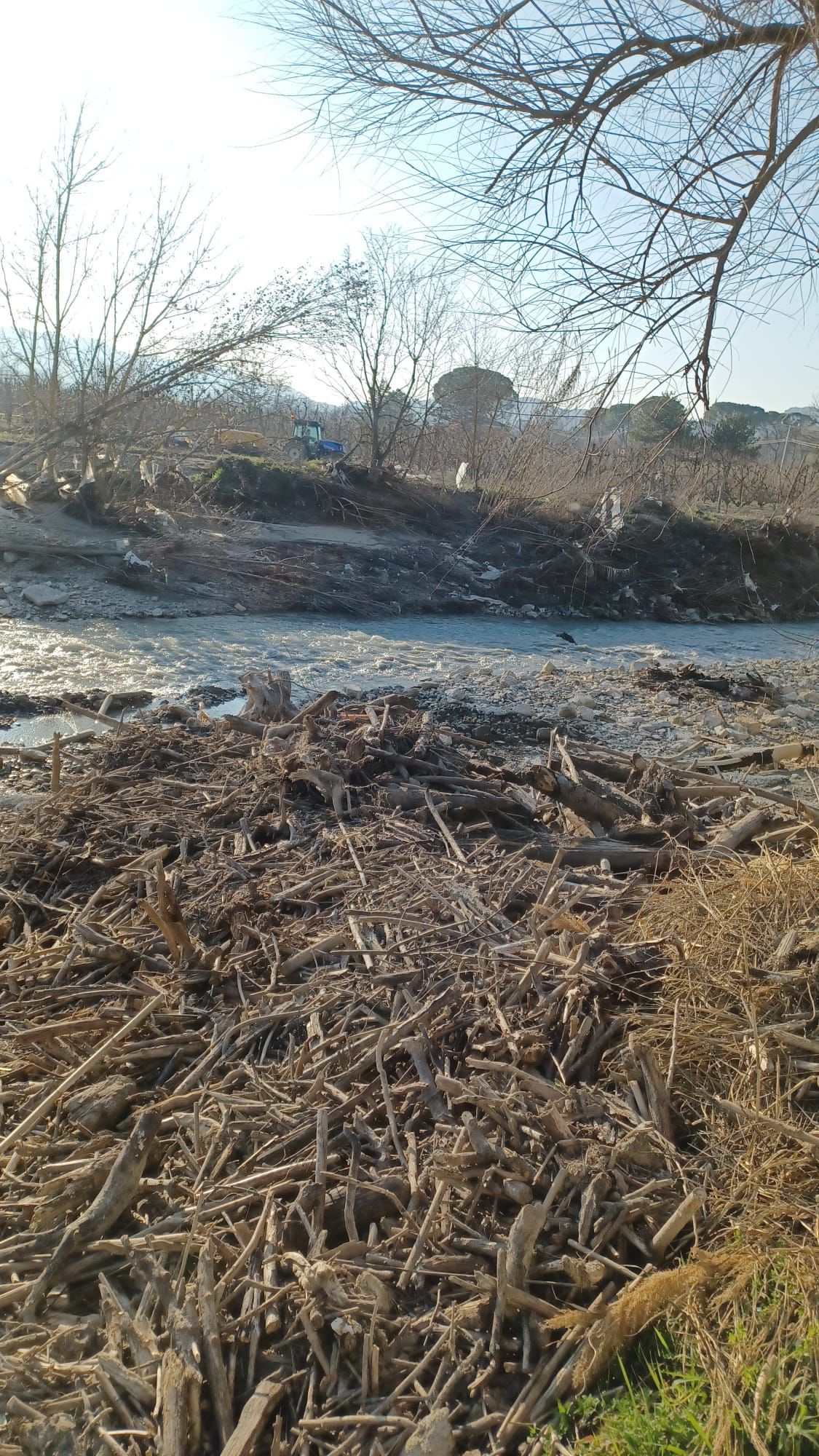 L’area da mesi è ingombra di legname, tronchi anche di grande dimensione, detriti, macerie, ghiaia mal posizionata e portata dalle piene che via via si sono succedute, con addirittura una grande griglia di protezione in metallo abbandonata in prossimità della centrale e vicina al letto del torrente..