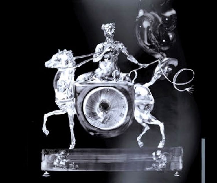 Massimo Pulini presenta alla Classense una serie di dipinti che narrano del tempo e dello spazio, della materia e dello spirito, della prossimità e della lontananza, del senso e del sentimento. Partendo da alcuni orologi da tavolo, istoriati con figure del mito, prodotti in Italia e in Francia tra Sette e Ottocento, il pittore conduce un ampio racconto che mette a confronto il ritratto di quegli oggetti temporali con la spazialità siderale. Così, dopo trent’anni, l’artista cesenate torna a dipingere sull’atmosfera insondabile delle radiografie, restituendo una dimensione onirica e facendo della pittura stessa, del suo impastarsi coi pensieri, un oggetto significante. Durante il momento inaugurale Massimo Pulini dialogherà con Pierdomenico Memeo, astrofisico.