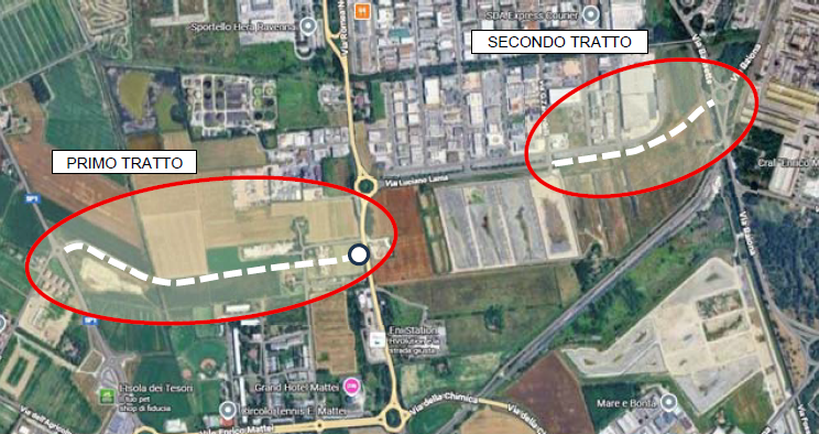 Il primo tratto, tra la rotonda Bulgaria e via Romea Nord, sarà lungo circa un chilometro. Il secondo avrà uno sviluppo di circa 620 metri: avrà inizio dal tratto esistente di via Luciano Lama e si congiungerà alla rotonda dei Doganieri.