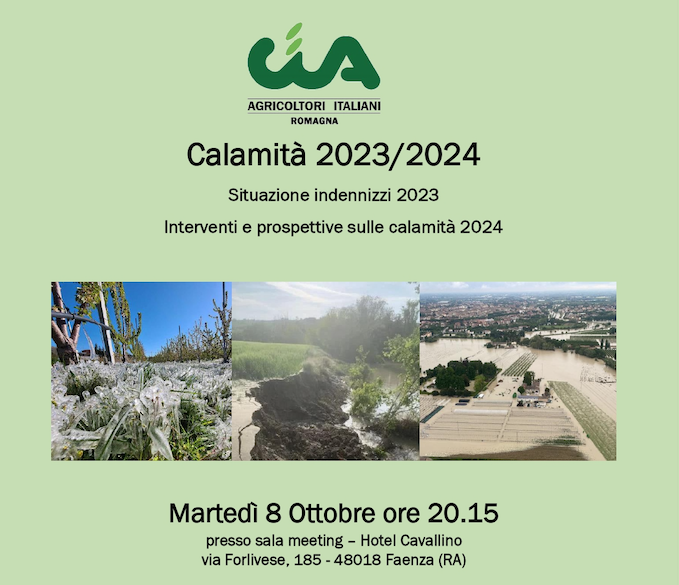 Cia Romagna ha indetto un’assemblea per martedì 8 ottobre durante la quale, a fronte delle calamità succedutesi fra il 2023 e il 2024, si affronteranno i temi relativi alla situazione degli indennizzi 2023 e si approfondiranno gli interventi e le prospettive dopo le pesanti calamità che hanno colpito nuovamente il territorio e il settore anche nel 2024.
