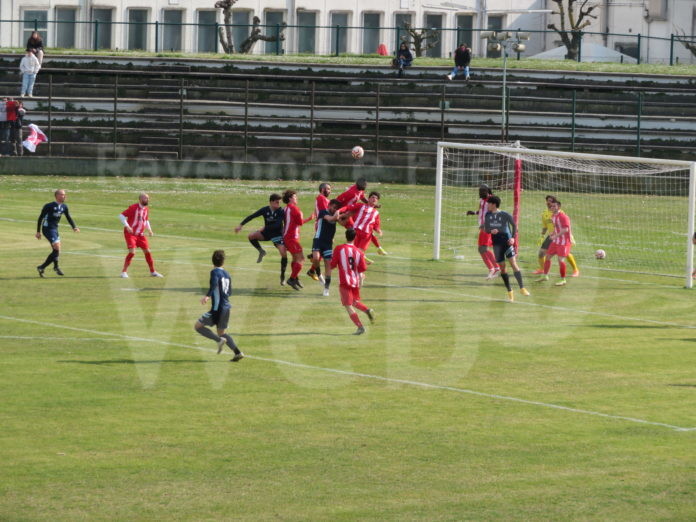 Mentre il Bagnacavallo cerca di gestire il vantaggio, anche con qualche rudezza, il Faenza prova con l’orgoglio a rimettersi in gioco, ma continua a sbagliare. Al 35’ Alessandro Albonetti mette al centro il pallone con un bel cross, ma Giacomo Lanzoni si divora un gol facilissimo non riuscendo ad appoggiare di testa in rete. Lo imita dalla parte opposta Simone Ricci che, liberato sotto porta da una deviazione, spedisce altissimo sopra la traversa da due passi.