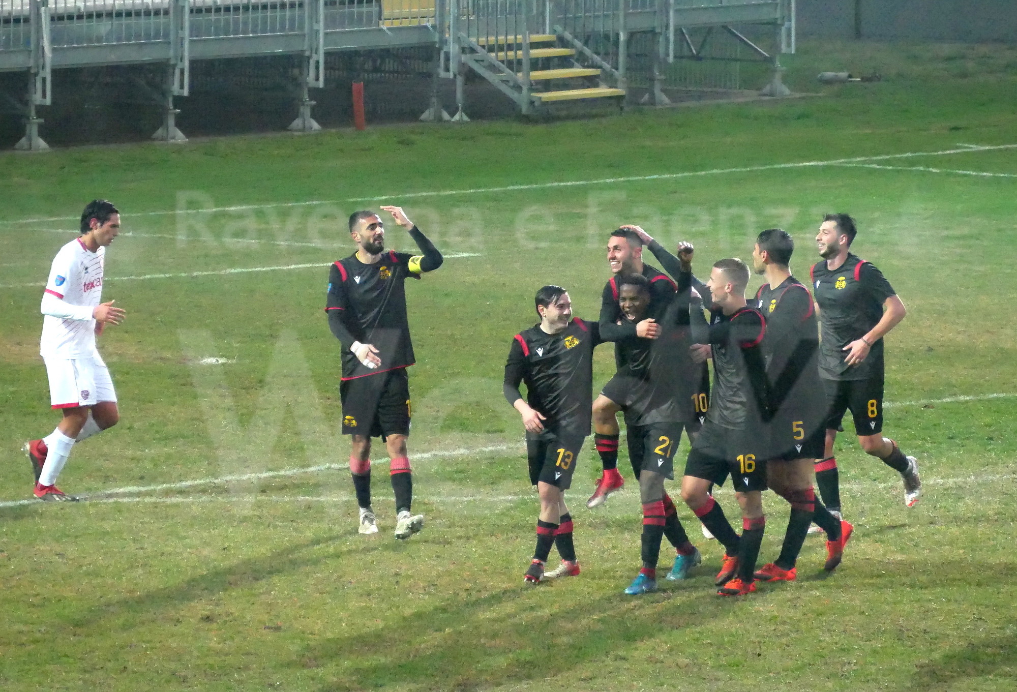 Ravenna Football Club 1913: Salvatori, Antonini Lui, Crocchianti, Lussignoli (14′ st Spinosa), Saporetti, Podestà (29′ st Ceccuzzi), Calì, Grazioli (33′ st Ercolani), Guidone, Haruna, Prati. A disp.: Antonini, Angelini, Crispino, Polvani, Mascanzoni, Nagy. All.: Andrea Dossena.
