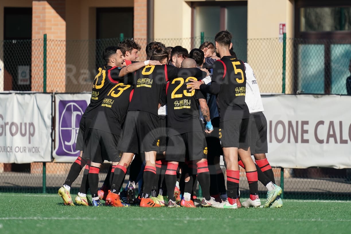 Il tecnico giallorosso stupisce tutti e mette in campo un Ravenna a fortissima trazione anteriore: Mendicino in avanti insieme a Guidone con Podestà e Saporetti ad agire ai lati, D’Orsi spostato a terzino sinistro e centrocampo retto dai neuroni di Spinosa e Prati. La voglia dei giallorossi di guidare la manovra si percepisce fin da subito e questo atteggiamento porta alla conclusione da fuori prima Podestà poi Grazioli. La prima vera occasione arriva con l’incornata di Antonini Lui, che sfiora la traversa. A sbloccare la gara ci pensa Saporetti, con un’azione che ormai è un marchio di fabbrica, controllo sulla destra, avversario saltato e rasoiata di mancino che si infila sul secondo palo, 17^ rete per il capocannoniere del girone e Ravenna meritatamente avanti al 15° minuto. Lo schiaffo risveglia i padroni di casa, che mettono un paio di bei palloni dentro dalla sinistra con la difesa giallorossa che con qualche affanno libera impedendo a Formato di impattare. Il Ravenna risponde con Guidone che raccoglie un cross basso di Grazioli, ma vede respinto in corner il suo tiro. Al 30’ perfetto inserimento di Staiti, il migliore dei suoi, che entra in area e scarica un destro che si infrange sul palo. Il Ravenna torna a macinare sfiora in raddoppio con Mendicino, che viene servito da Saporetti a centro area ma la conclusione a colpo sicuro del 9 giallorosso viene deviata e diventa facile preda di Sorzi. Il raddoppio è nell’aria, e ci pensa di nuovo Prati, in crescita costante a realizzarlo. Palla di Saporetti dalla sinistra, controllo e botta sul primo palo del ravennate. Ravenna che chiude la frazione con il doppio vantaggio. Alla ripresa Serpini cambia qualcosa, inserendo Remedi e Sala. Proprio quest’ultimo al 5’ ruba il tempo a Grazioli, si infila in area e si guadagna un calcio di rigore. Sul dischetto si presenta Caprioni, Botti intuisce ma non riesce a deviare e la palla si insacca. Partita riaperta e Lentigione che in questa fase prende campo e aumenta i giri per cercare il pareggio. Gli spazi sono stretti ed il pallone viaggia velocemente. I padroni di casa costruiscono un paio di opportunità, la prima con Sala che non trova lo specchio e la seconda con Staiti che di nuovo conclude da posizione agevole dopo un bell’inserimento, trovando di nuovo il legno sulla sua strada. Il Ravenna serra i ranghi e Dossena inserisce forze fresche che disinnescano la spinta del Lentigione, anzi con gli emiliani proiettati in avanti alla ricerca del pareggio si aprono praterie per i giallorossi. Ci prova prima D’Orsi a chiuderla dopo un entusiasmante coast to coast, ma Sorzi fa buona guardia. Nulla può invece allo scadere sul contropiede gestito magistralmente da Guidone che cerca e trova Belli, controllo e conclusione che al 90’ mette la parola fine alla gara. Il Ravenna esce dallo scontro diretto con la sesta vittoria consecutiva, dimostrando di riuscire anche nelle difficoltà a mantenere sempre come costante una mentalità offensiva, un gioco propositivo e la ferrea volontà di gestire il pallone sempre e comunque, anche quando le condizioni sembrano non essere favorevoli. L’esame Lentigione, una squadra costruita per vincere il campionato, è superato con assoluto merito. Giallorossi che questa sera potranno godersi anche matematicamente il secondo posto in classifica ma da domani saranno subito sul pezzo in vista dell’infrasettimanale contro la Correggese, il campionato non si ferma e di certo il Ravenna non vuole smettere di macinare gioco, gol e punti.