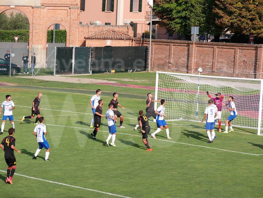Pronti via ed il Mezzolara passa con Bianchi, abilissimo a girare sul secondo palo il cross proveniente dalla sinistra di Bovo, incanalando già la gara su quello che è un binario favorevole ai bianco azzurri. Ravenna che dopo lo shock iniziale cerca di prendere le misure, trovando anche il pareggio alla prima vera sortita offensiva. Al 13’ Calì arriva nuovamente puntuale al colpo di testa sul corner battuto da Ambrosini ed insacca sul secondo palo. Giallorossi che a questo punto provano a macinare gioco, ma sbattono contro il muro del Mezzolara, abilissimo a raddoppiare chiudendo ogni possibile spazio al Ravenna. Nella ripresa ci si aspetterebbe un Ravenna pronto a colpire, ma è di nuovo il Mezzolara a passare. Contropiede ben orchestrato da Bovo, che trova Triggiani pronto a fulminare Botti con un sinistro che si insacca nel sette. Il Ravenna non trova il bandolo della matassa ed padroni di casa hanno un paio di occasioni per chiuderla, ma la difesa giallorossa salva. La palla per riaprirla capita al 75’ sul piede di Saporetti, ma la sua conclusione a botta sicura si infrange contro la traversa. Ravenna che adesso si riversa nella metà campo del Mezzolara, ma senza creare ulteriori situazioni particolarmente pericolose dalle parti di Malagoli, inaspettatamente inoperoso. Nel finale concitato con tutto il Ravenna proiettato in avanti alla ricerca del pareggio Bernardi è il più lesto e ruba palla a Botti, pronto a rilanciare per l’assalto finale, con a punta appoggia in rete per il 3-1 definitivo. Ravenna che dopo questo scivolone affronterà il Lentigione a punteggio pieno nel turno infrasettimanale al Benelli.