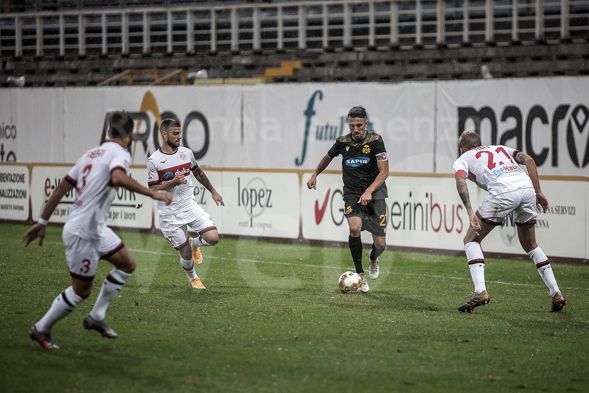 Con il fischio d’inizio spostato alle ore 20,30 a seguito di una positività a Covid-19 nelle fila giallorosse, Magi decide di ripartire con lo stesso 11 di domenica, con Martignago a fare da spalla a Mokulu e Papa che ancora non è pronto per partire dall’inizio. La prima emozione è dei padroni di casa, con Franchi che trova Volpicelli al volo sul secondo palo ma il cui tiro è alto. Rispondono al 12’ le punte ravennati con una bella combinazione che libera Martignago che però viene anticipato al momento della conclusione. Al quarto d’ora la dea bendata sorride al Matelica, conclusione da fuori area di Bordo, che trova una deviazione che mette fuori casa Tonti e porta in vantaggio i biancorossi. Il Ravenna prova a darsi una scossa ed a riprendere le redini della gara, ma una disattenzione a ridosso dello scadere porta al doppio vantaggio del Matelica. Su corner infatti De Santis riesce a liberarsi in area e ad incornare sul secondo palo. Prima del duplice fischio è Mokulu ad avere la palla per riaprirla ma viene rintuzzato in angolo.