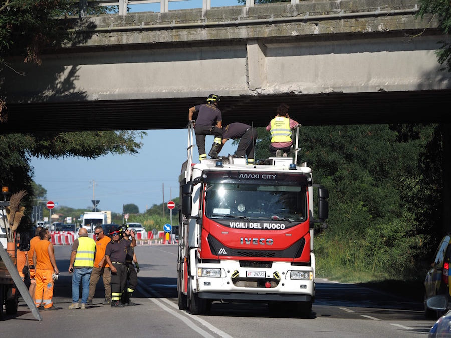 Questo pomeriggio un camion ha urtato il ponte della Classicana con la gru provocando la caduta di diversi calcinacci.