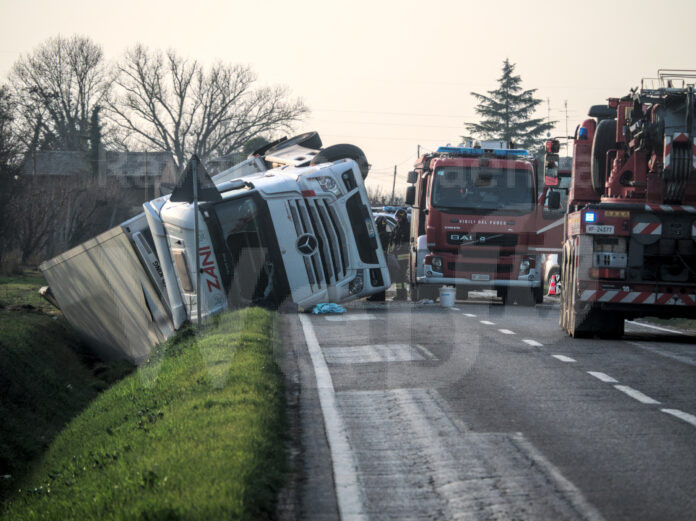 Un camion è uscito di strada ribaltandosi su un lato. Alla guida un 57enne rimasto ferito.