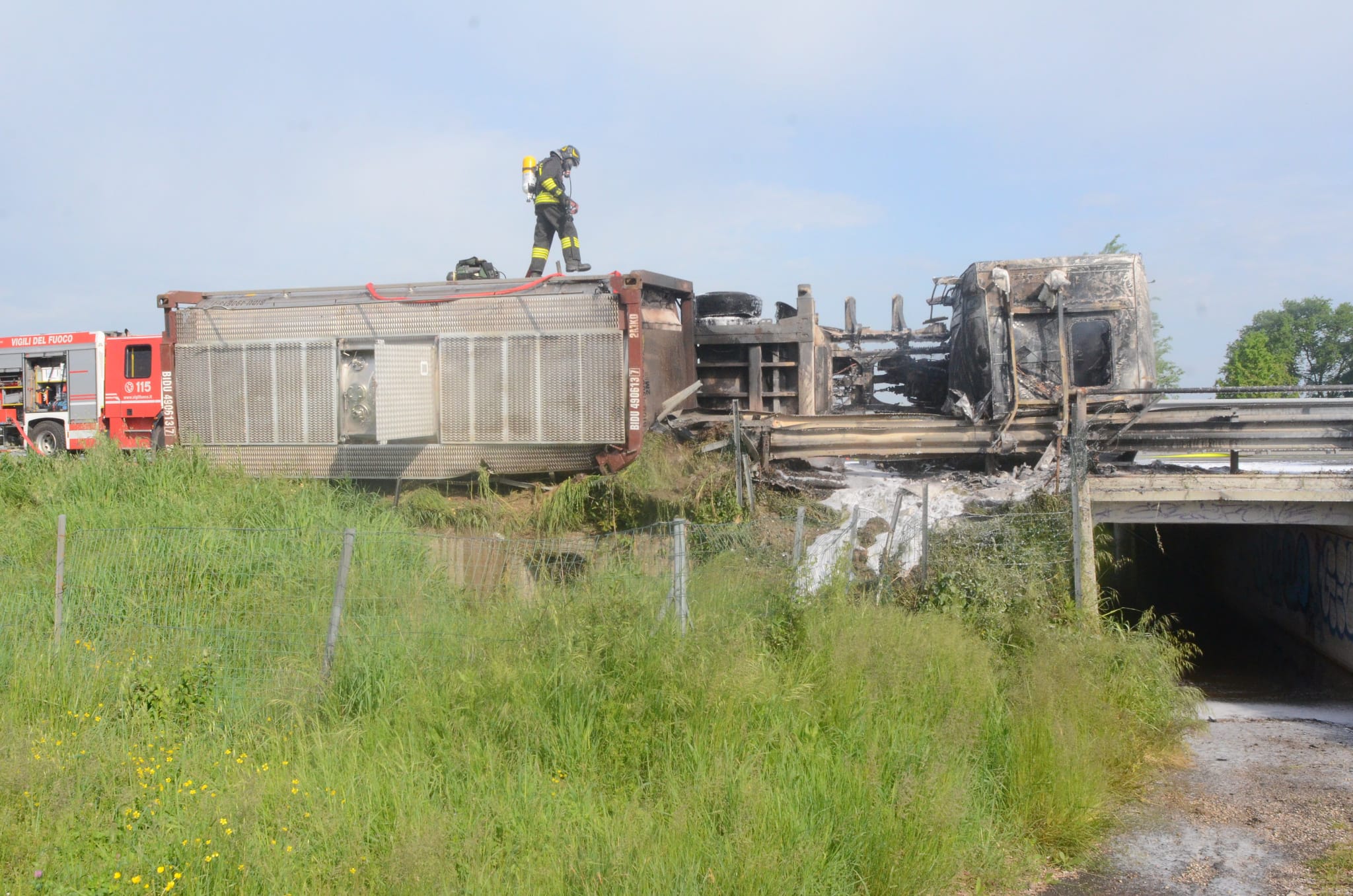 Coinvolti nell’incendio anche un altro mezzo pesante e un’auto. Sarà compito della Polizia stradale ricostruire quanto accaduto.