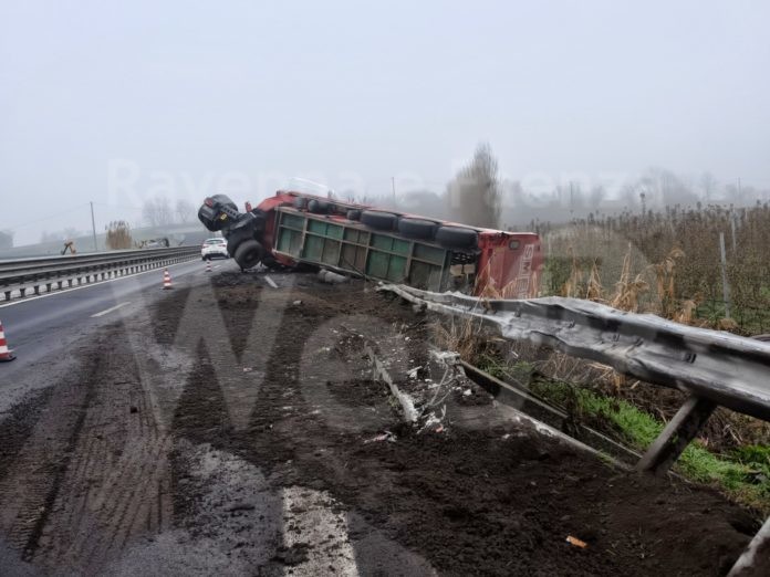 E 45 chiusa nel tratto Ravenna Cesena dopo Casemurate, uscita obbligatoria a Casemurate causa l’uscita di strada di un Tir che questa mattina intorno alle 8 si è ribaltato.