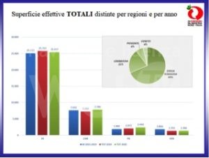 Le superfici effettive del 2020 sono in linea con quelle dello scorso anno visto che si registra soltanto un lieve aumento (+1,3%) rispetto alle superfici effettive del 2019, legato soprattutto alla crescita del biologico (ora pari a 3.451 ettari) trainata dai dati del territorio Ferrarese. Ora si valuterà l’andamento della campagna per la verifica della programmazione anche in merito agli impegni sul quantitativo prodotto.