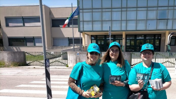 All’uscita da scuola i volontari, visibili grazie alla caratteristica maglietta e cappellino verdi con il logo della fondazione, hanno distribuito 2 tipi di opuscoli informativi gratuiti: “La Verita` sulla Droga” che affronta tutti i tipi di sostanze stupefacenti e “Alcol”.