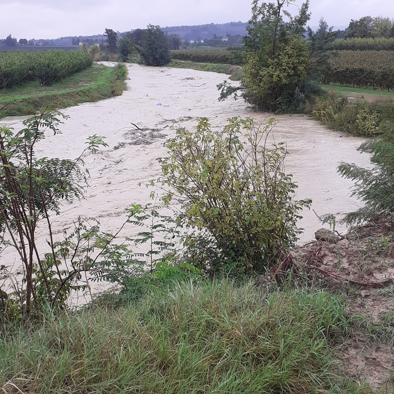 Situazione piuttosto grave lungo il torrente Marzeno, anche qui si segnalano frutteti nuovamente alluvionati.