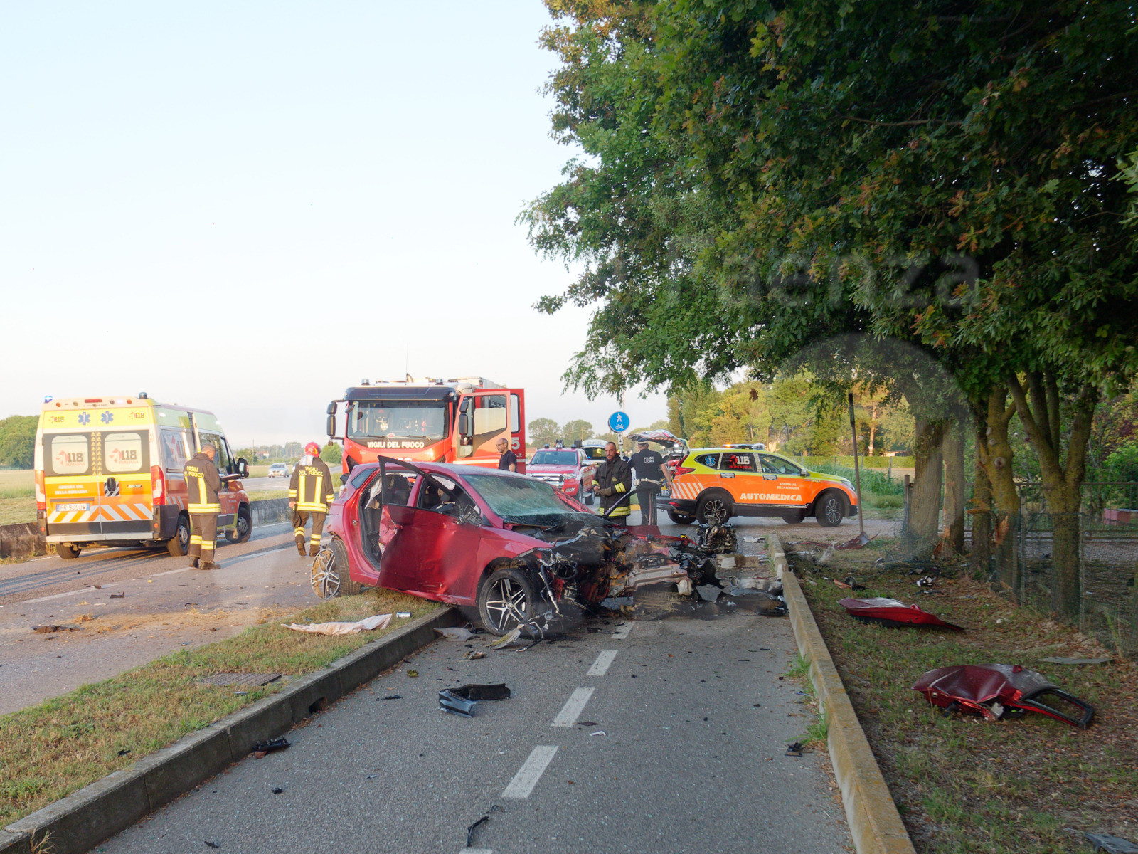 Questa mattina poco dopo le 5, in via Canale Molinetto un ragazzo del 2001 a bordo di una Seat Ibiza da solo procedeva in direzione Punta Marina a forte velocità e poco prima del distributore ha sbandato a sinistra, ha attraversato lo spartitraffico in diagonale senza colpire muretti e si schiantato sulla fila di alberi che delimita il parcheggio privato del chiosco Piadina lato Canale Molinetto verso Ravenna. A causa forte impatto è volato via il blocco motore e la bombola di alimentazione GPL. Sul posto gli uomini del 118 che hanno aspettato l’arrivo dei Vigili del Fuoco che dopo circa 20 minuti hanno estratto il ferito che viene estratto, con diversi traumi e viene portato a Cesena al Bufalini cosciente.