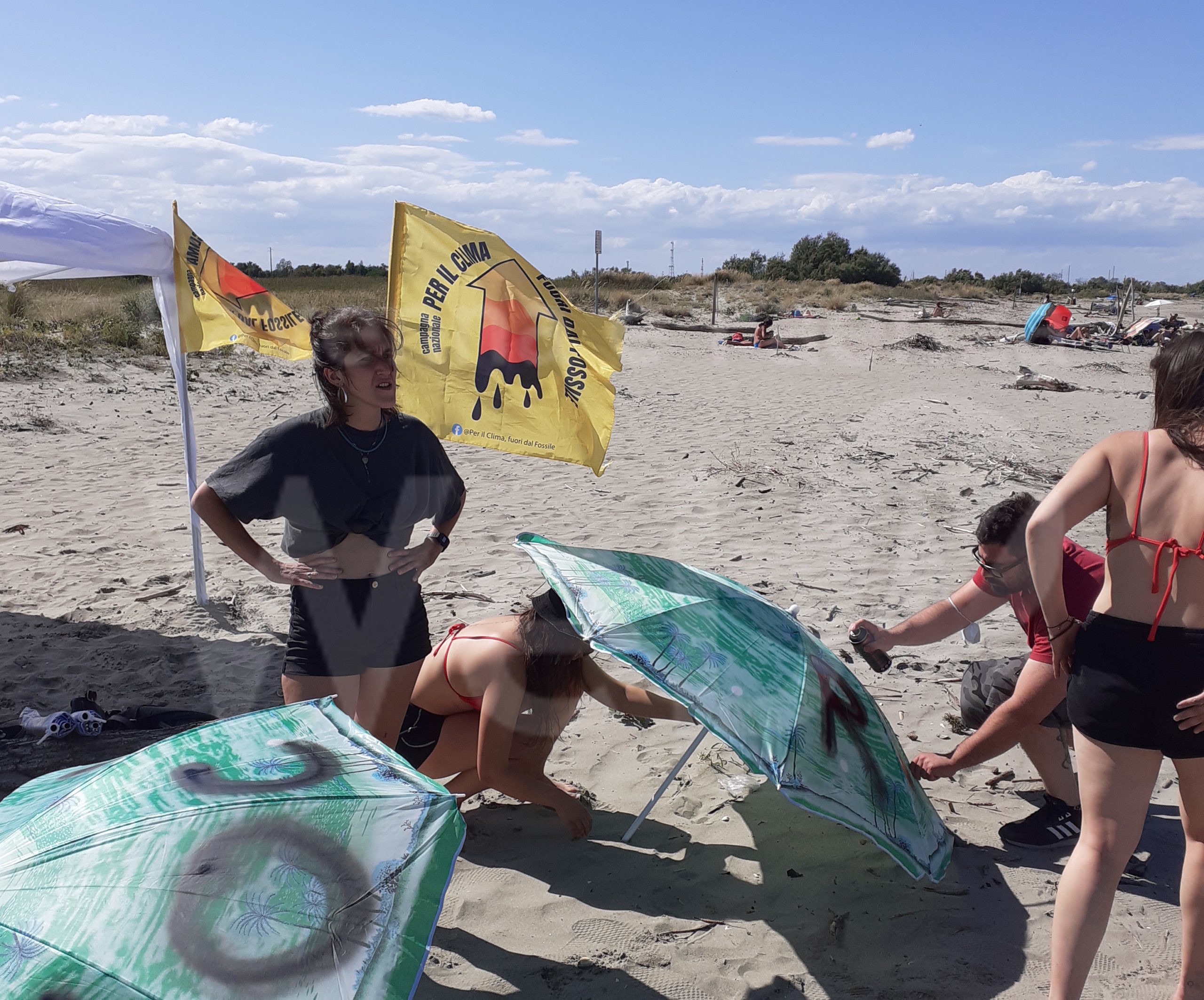 Nel pomeriggio di ieri nella spiaggia libera di Lido di Dante, prospiciente la più vicina delle piattaforme di estrazione del metano, si sono dati appuntamento gli attivisti di una delle “Carovane ambientaliste” che in questi giorni stanno percorrendo diverse zone d’ Italia, sedi di criticità ambientali e di mobilitazioni per la difesa della natura, per la trasformazione ecologica e di contrasto a progetti di pesante impatto per gli ecosistemi. L’iniziativa delle “carovane” è organizzata da un insieme di collettivi riuniti nella Rete Rise Up for Climate Justice, e nel nostro territorio ha avuto l’adesione del locale Coordinamento della Campagna “Per il Clima – Fuori dal fossile”.