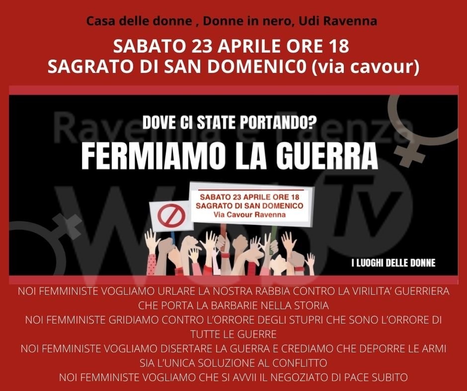 Aderiscono all’iniziativa anche Donne in Nero e Udi Ravenna. Tutte le cittadine e i cittadini sono invitate/i a partecipare.