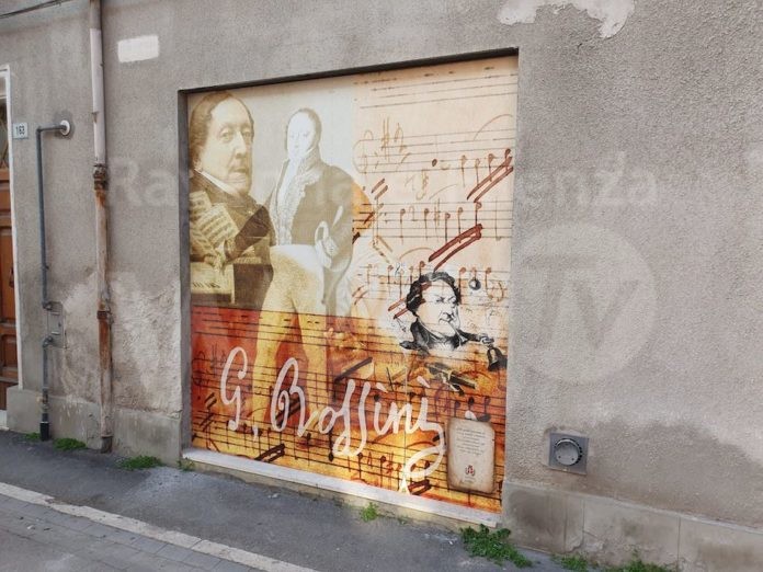 A piedi, dal centro storico, il visitatore sarà accompagnato da immagini e ritratti rielaborati del compositore, esposti negli spazi sfitti, offerti temporaneamente dai proprietari per rendere più accogliente la città e creare un filo rosso tra la casa che fu dei nonni di Rossini e altri luoghi della sua vita (la Chiesa del Carmine, la casa in cui visse in via Rocca, 14) e oggi a lui dedicati, come il Teatro Comunale. I pannelli decorativi sono visibili in via Manfredi 36, corso Mazzini 161 e in piazza Cavour 15. A corollario delle indicazioni stradali, è stata realizzata una mappa cartacea e online, disegnata dall’artista Claudio Ballestracci, presto visibile sul sito del Comune.