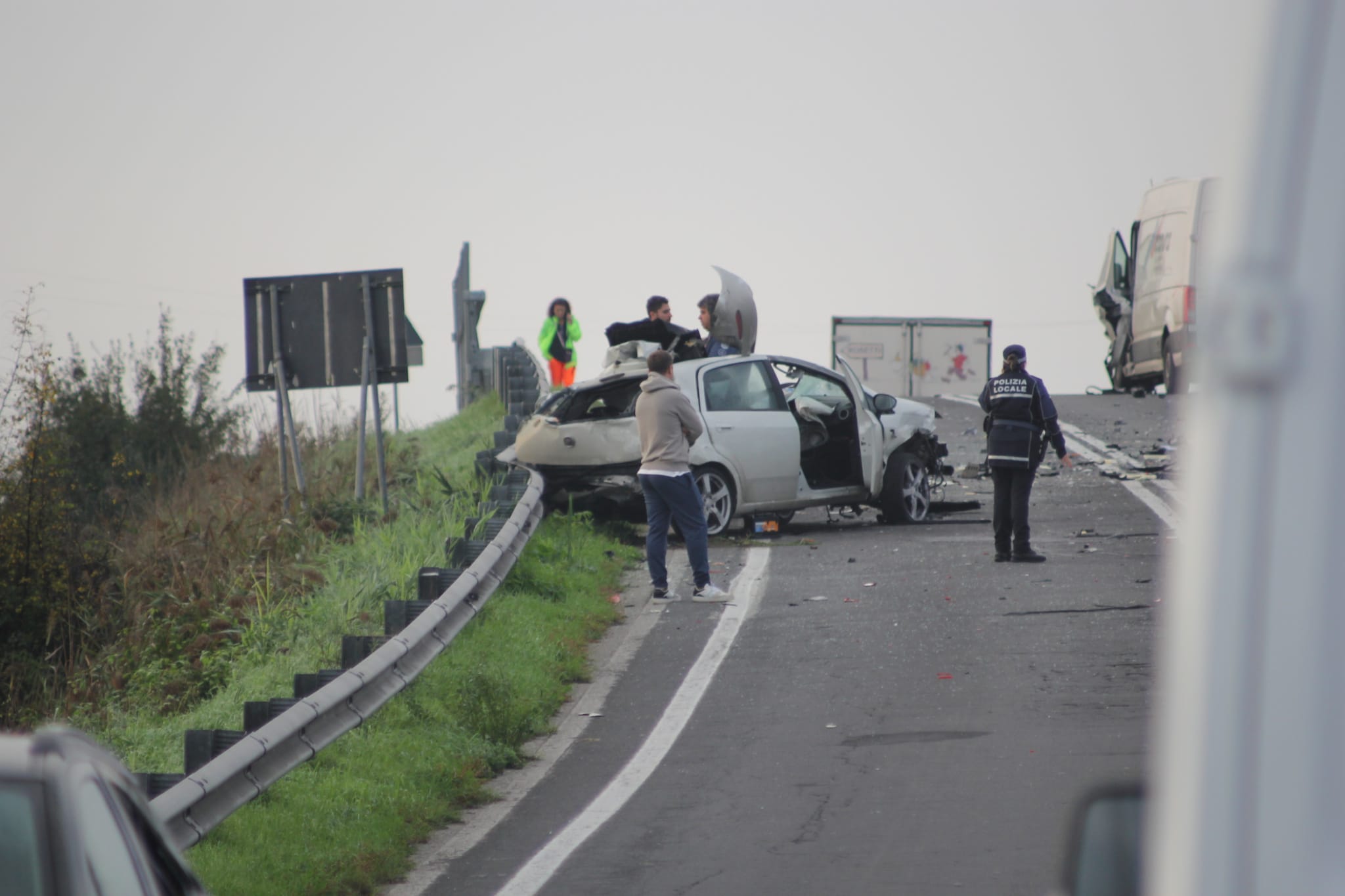 Sul posto i Vigili del Fuoco la Polizia Locale e i Carabinieri. La strada è stata al lungo chiusa al traffico per permettere i soccorsi e i rilievi di legge.
