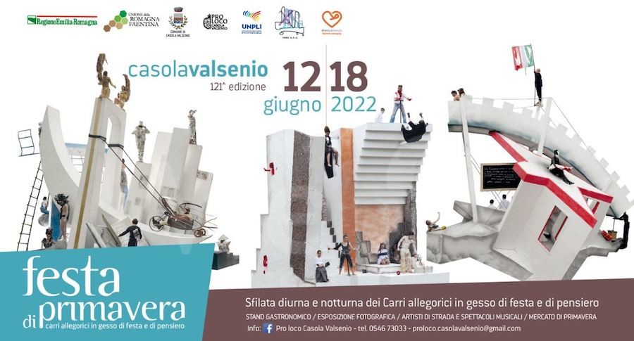 Domenica 12 giugno, giorno della sfilata diurna dei carri, vedrà susseguirsi diversi eventi. Dalle ore 10.00 nel centro storico di Casola si terrà il Mercato di Primavera, con artigianato, oggettistica, gastronomia e nello stesso orario, in Via Marconi, il Mercato artistico con hobbisti e ceramisti. Nel Parco Giulio Cavina “Sguardi e strutture”, installazione fotografica dedicata al mondo dei Carri Allegorici in Gesso di Festa e di Pensiero.