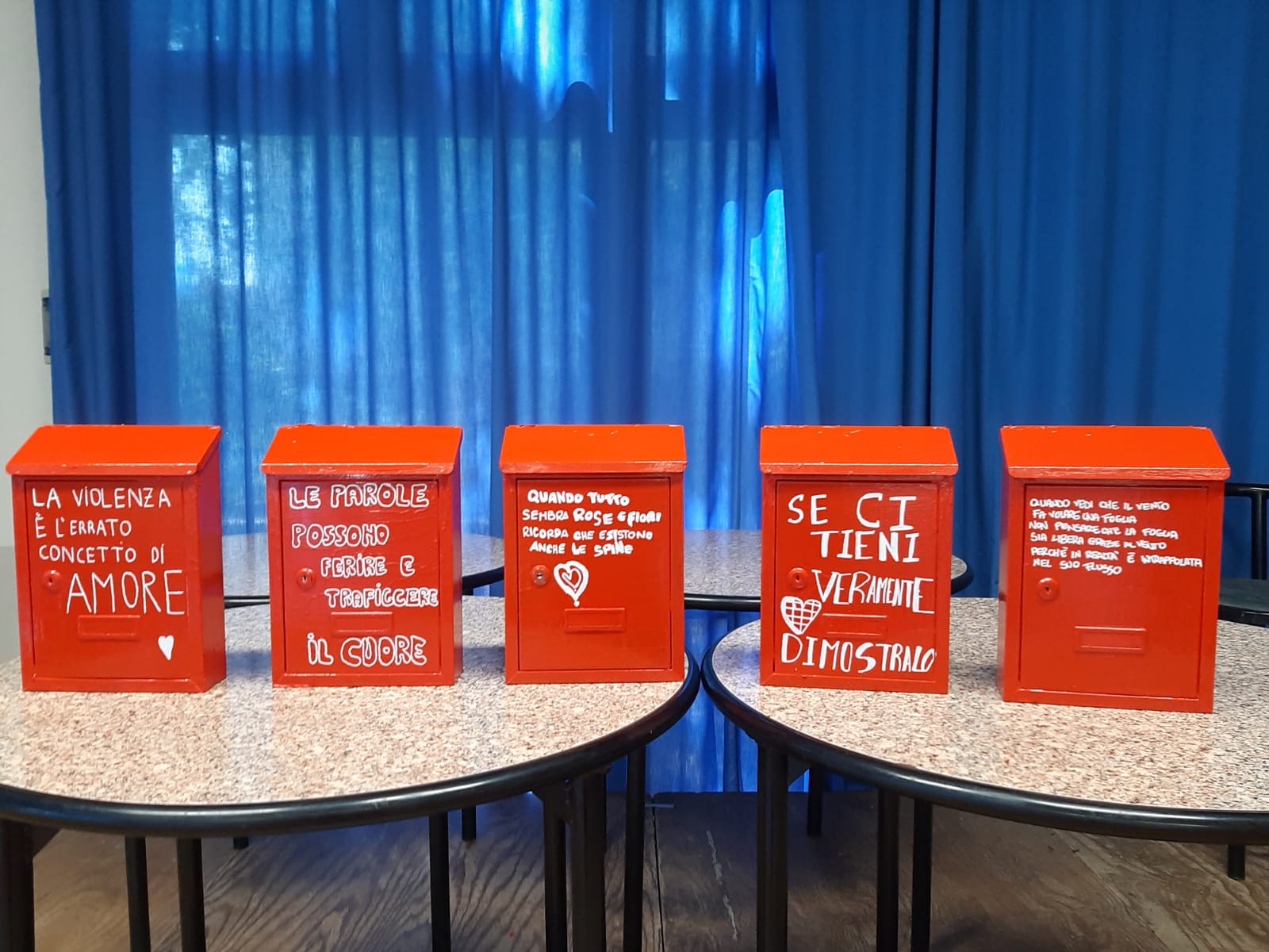 Le cassette postali rosse realizzate, verranno posizionate vicino alle panchine rosse già presenti sul territorio, nelle quali i cittadini e le cittadine possono inserire, idee, pensieri, poesie e scritti sul tema della violenza