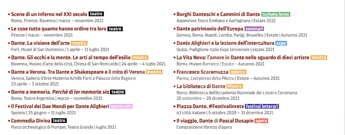 Qui invece le principali iniziative sostenute dal Comitato dantesco per l’anniversario dei 700 anni.