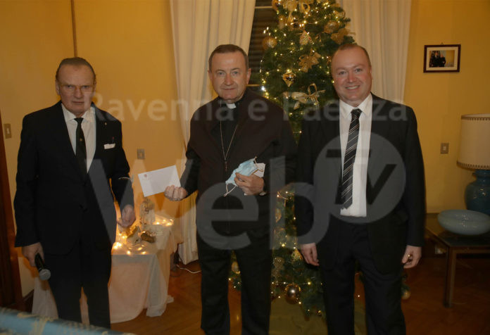 Al Circolo ravennate e dei Forestieri, si è svolta ieri sera la cena degli auguri natalizi del circolo, il devoluto della serata è stato consegnato dal presidente del circolo Beppe Rossi e dal consigliere Bendandi all’Arcivescovo Lorenzo Ghizzoni , che utilizzerà la somma di denaro per la mensa dei poveri di Santa Teresa .