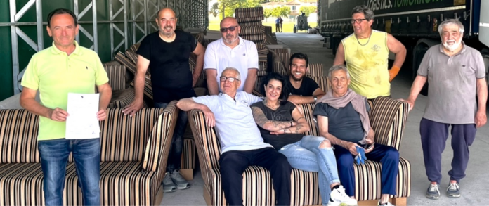 Donati ai paesi alluvionati 134 poltrone, 81 divani (anche letto), 15 tavoli in cristallo, 75 pouf, 15 armadietti ,82 sgabelli in legno e stoffa.